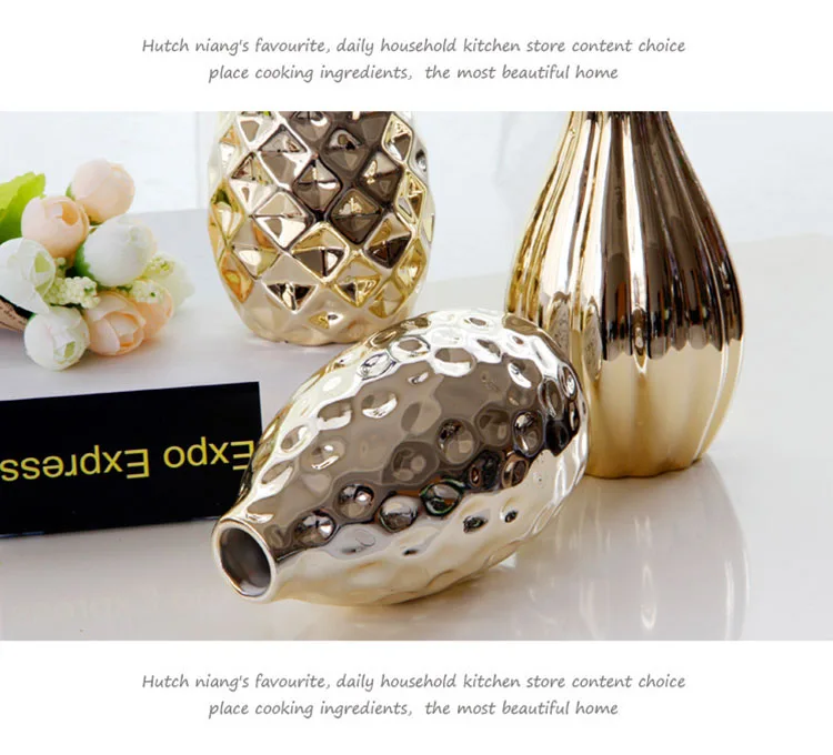 * Процесс поверхностного золотого покрытия. * Керамический материал, хорошая износостойкость и устойчивость к коррозии. * Европейский и американский стиль, горячий на Ближнем Востоке. * Красивый внешний вид, очень хорошие вазы, украшения.