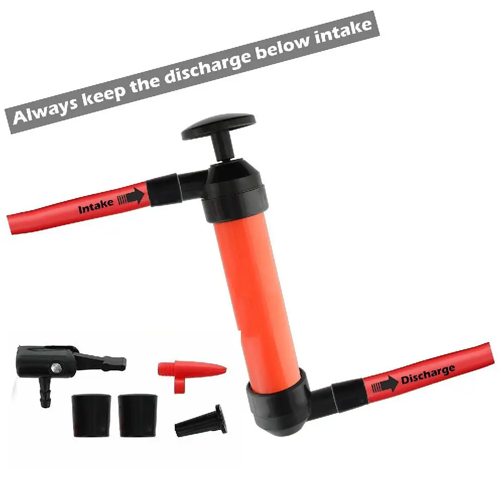 Использование: Легкий большой ручной вакуумный насос с системой впуска и разряда для изменения моторного масла, заполненных резервуаров, сезонного хранения, заправки пустым баком из контейнер для бензина, слива трансмиссионного бензинового топлива, сырая нефть и газ от автомобилей, грузовиков, тракторов, снегоуборщиков, лодок, газонокосилок и наружного электрооборудования, Или извлеките воду из аквариумных резервуаров, отсоединяйте отвод туалета, отделяйте осадки при пивоварении или надувании винных шин, воздушных шаров с адаптером воздушного давления.