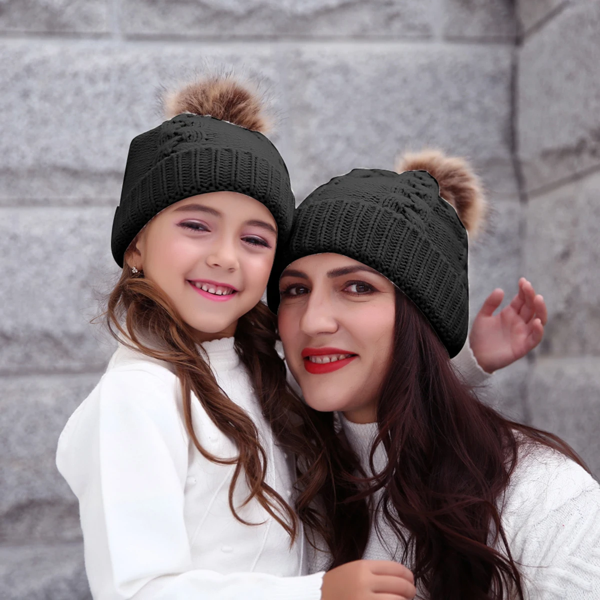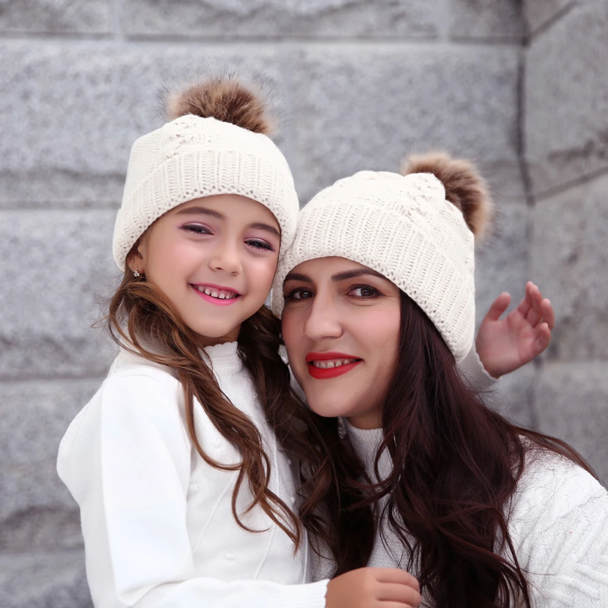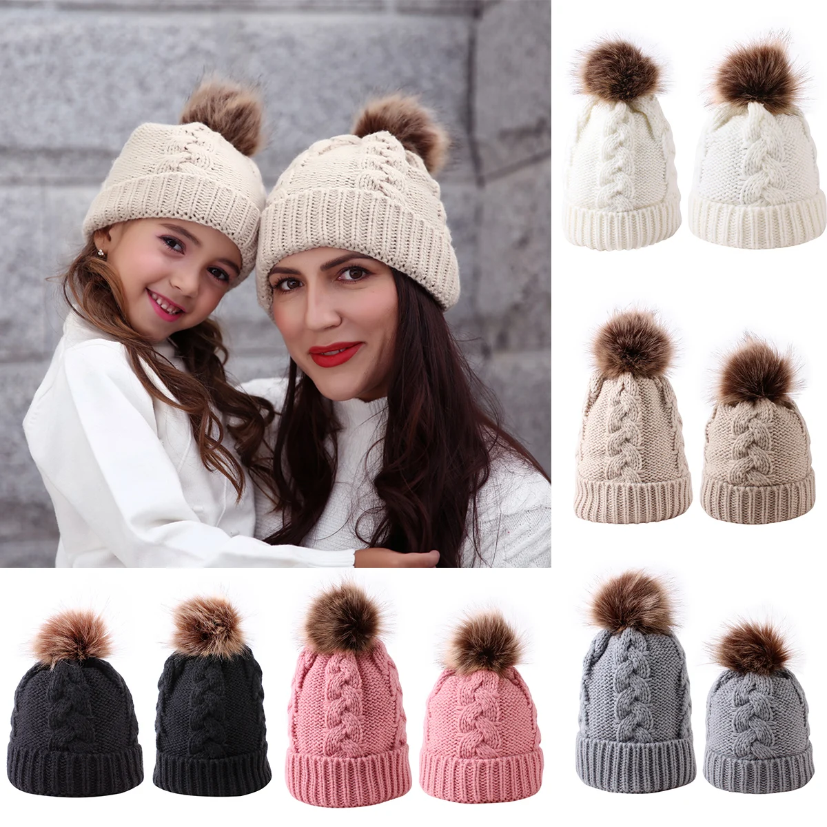 2 шт., теплые зимние вязаные шапки для мамы и ребенка, милые зимние шапки для мамы и ребенка, вязаная шапка