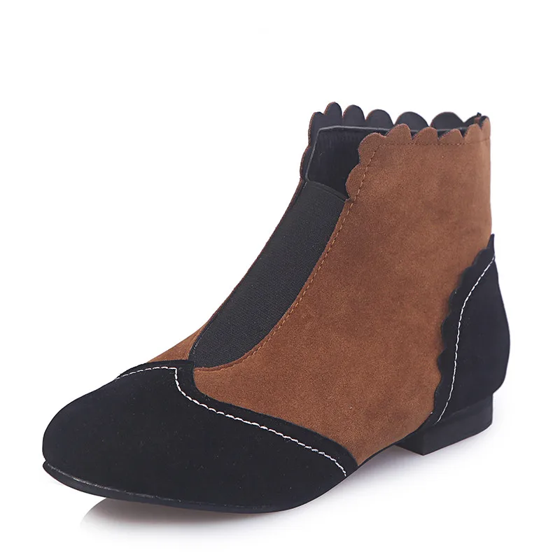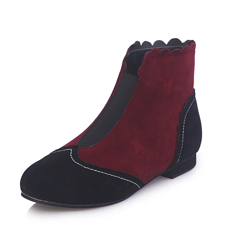 Women's Suede Flat Color Matching Large Size Shoes Fashion Low Tube Warm Boots