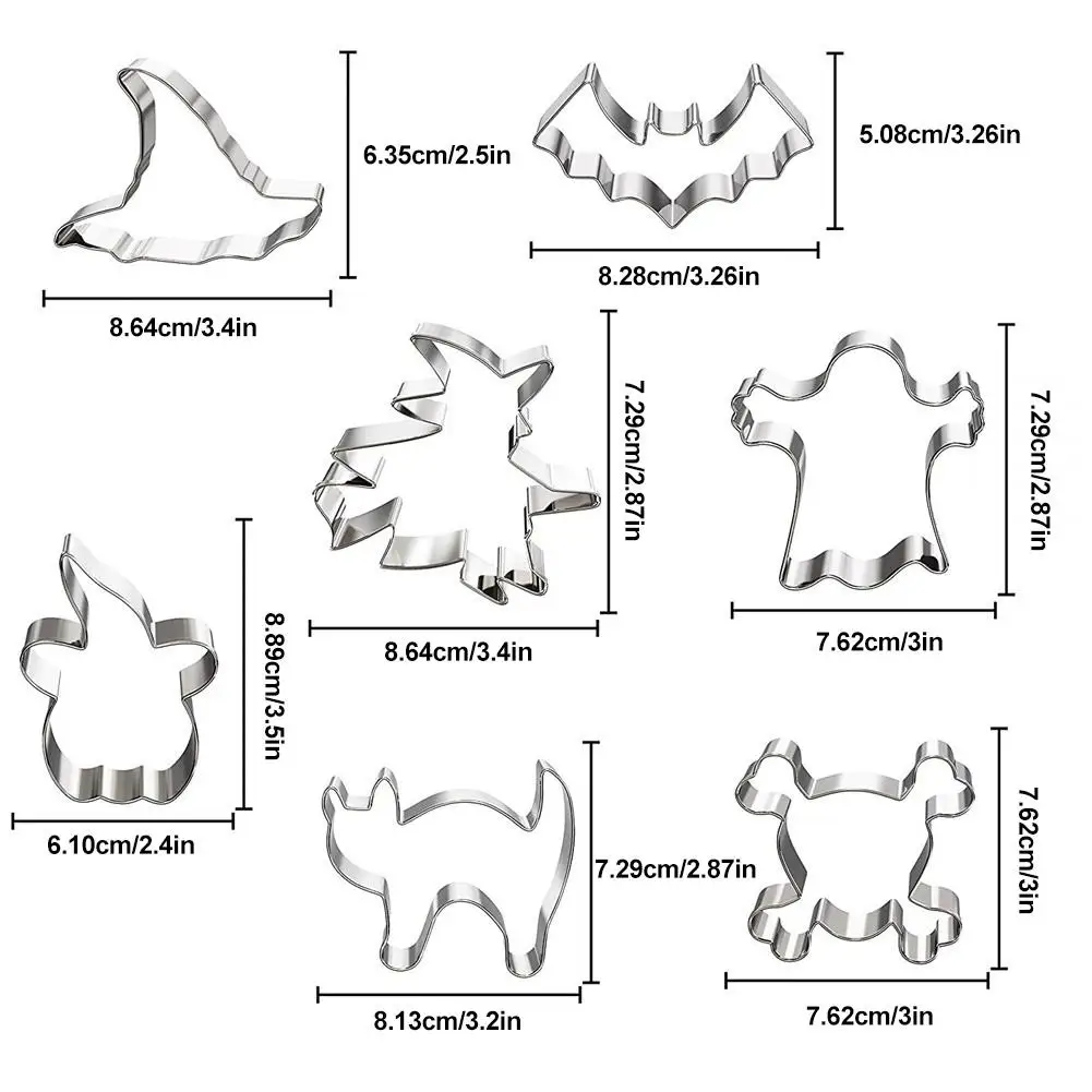 7PCS Halloween Cookie Cutter Stainless Steel Cut Candy Biscuit Mold Cooking Tools Halloween Theme Metal Cutters Mould