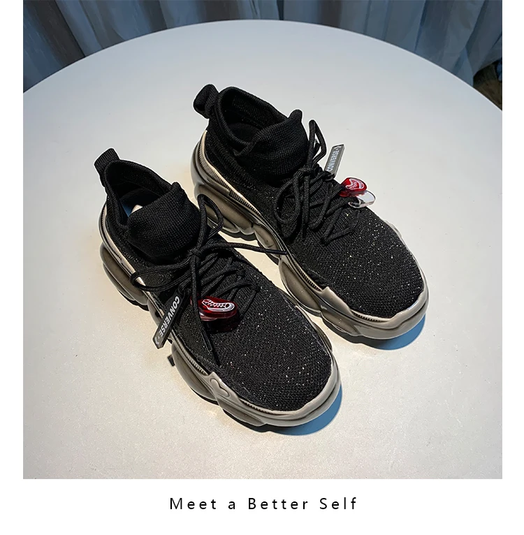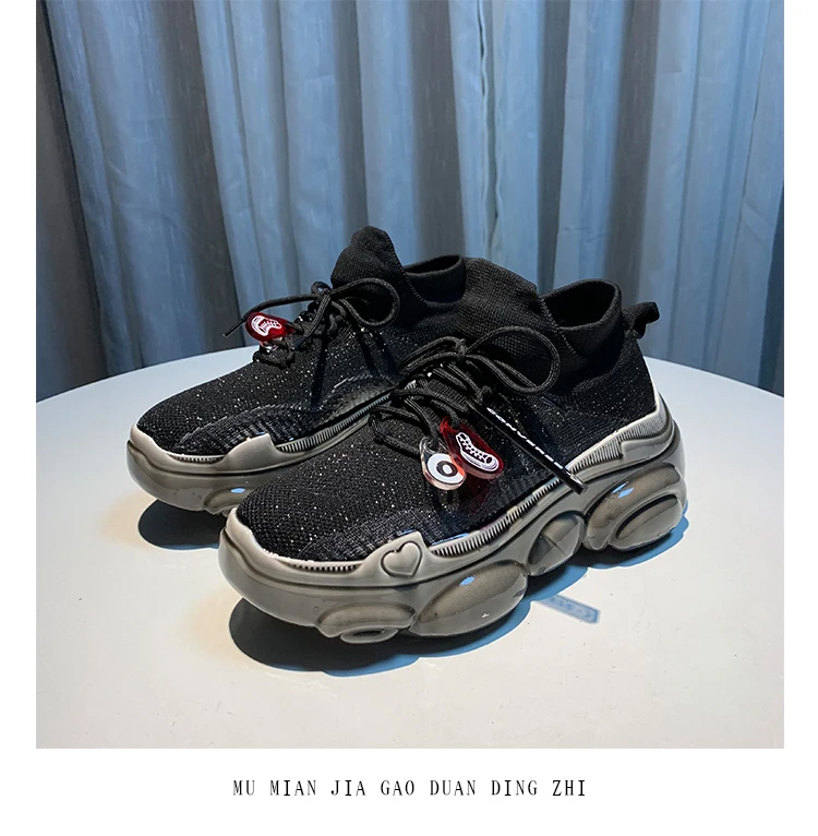 Женские кроссовки для тенниса на платформе черные толстой подошве модные