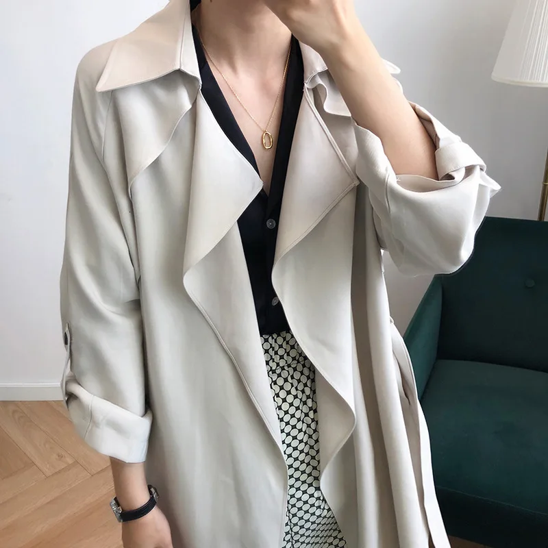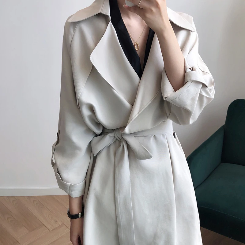Женский Повседневный Тренч средней длины с капюшоном армейский зеленый длинным