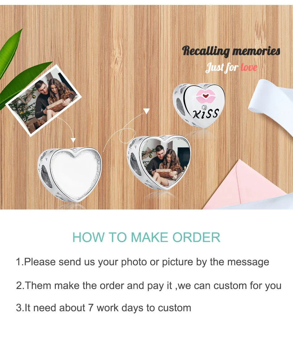 1. Обслуживание: Мы предоставляем бесплатные пользовательские фото-услуги. 2. Метод: вы можете просто отправить фотографию, которую вы хотите, непосредственно в сообщении. 3. Время доставки: заказное очарование должно быть настроено и нужно около 5- 10 дней, чтобы произвести, надеюсь, что мой ценный клиент может понять. Пожалуйста, не волнуйтесь, когда очарование закончится, мы отправим быстрее. 4. Если у вас есть какие-либо вопросы, пожалуйста, свяжитесь с нами, мы будем рады решить проблемы для вас.