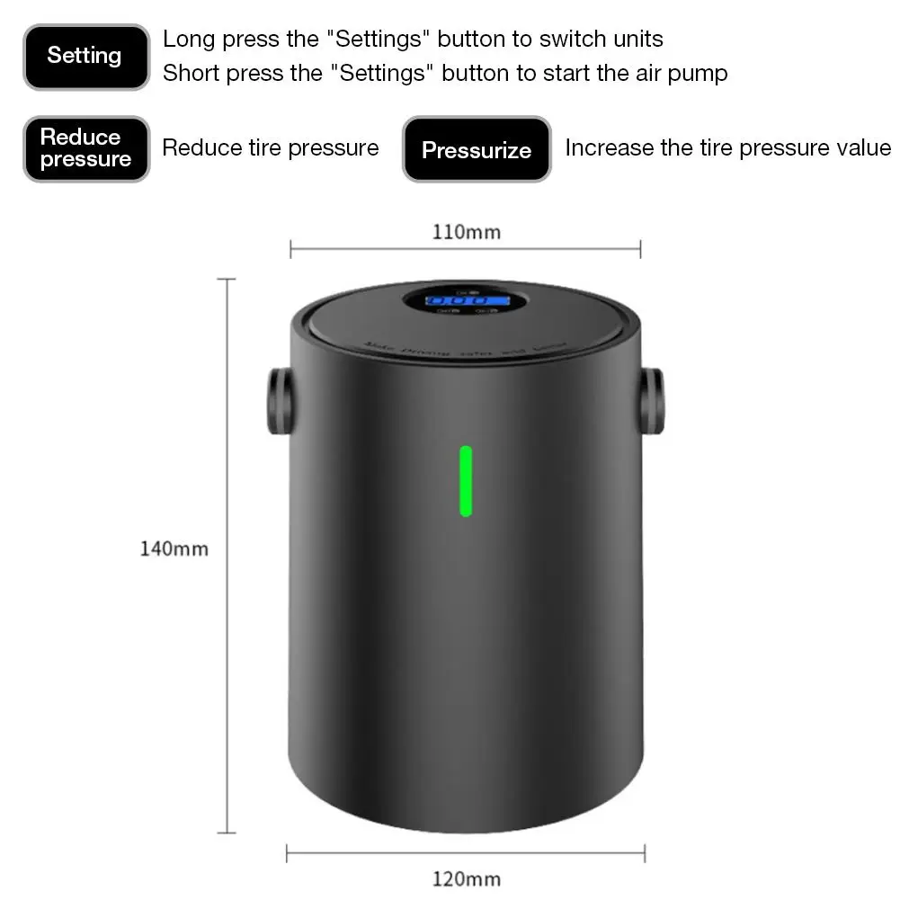 1. Многоцелевой воздушный насос: клапан Presta, Шариковая игла и пластиковая насадка, вы можете надуть автомобиль/велосипед шины/батареи автомобиля, и другие надувные изделия, такие как матрасы для кемпинга, надувные кровати, надувные лодки и шары, игрушки и так далее.1 * Руководство пользователя
