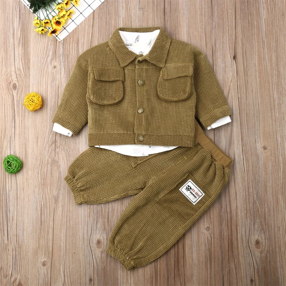 Добро пожаловать -Качество является первым с лучшим обслуживанием. Все покупатели — наши друзья. — Модный дизайн, 100% новый товар высокого качества! -Материал: вельвет-Цвет: как показано на фотографиях -Список включает в себя: костюмы из трех предметов -Размеры: 80/90/100/110/120 см Размеры таблицей: Внимание: если ваш ребенок пухленький, мы рекомендуем выбрать больший размер, спасибо.