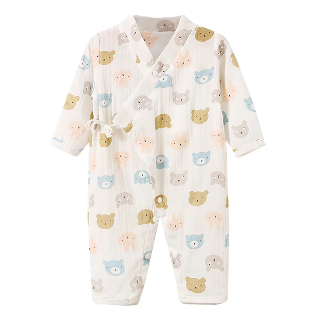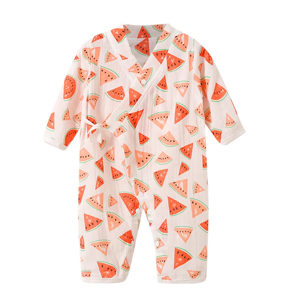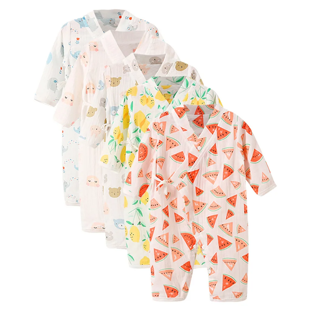 Одежда для новорожденных Для маленьких мальчиков и девочек пряжа халат с цветочным узором Детский комбинезон-кимоно детский комбинезон, одежда для сна