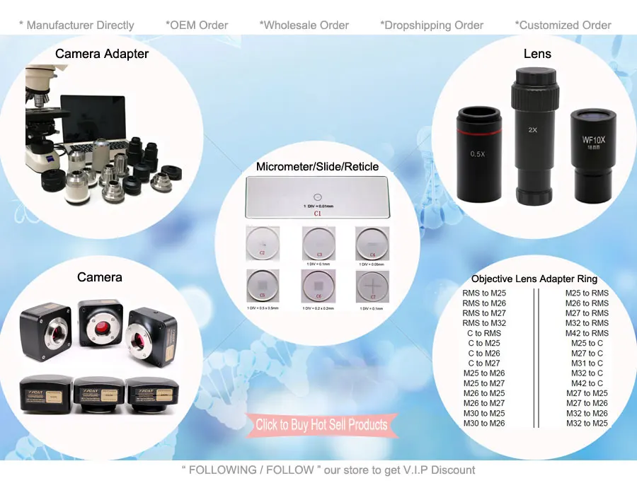 О: наша компания является профессиональным производителем аксессуаров для микроскопов более 10 лет. Все наши продукты проверяются нашим отделом контроля качества один за другим перед отправкой. Поэтому не беспокойтесь о качестве.