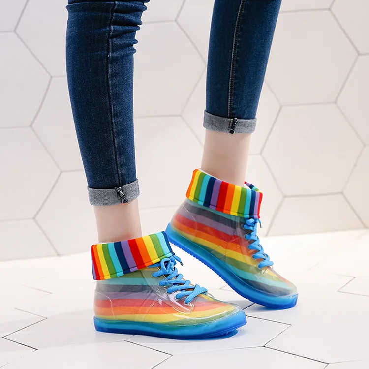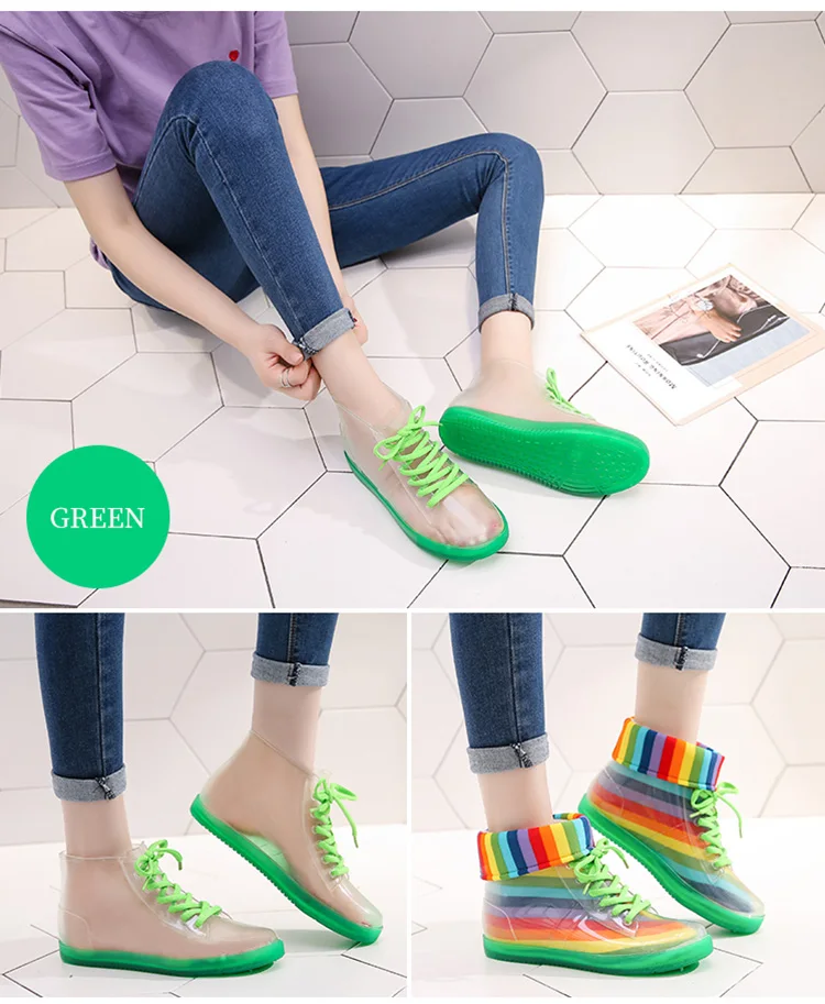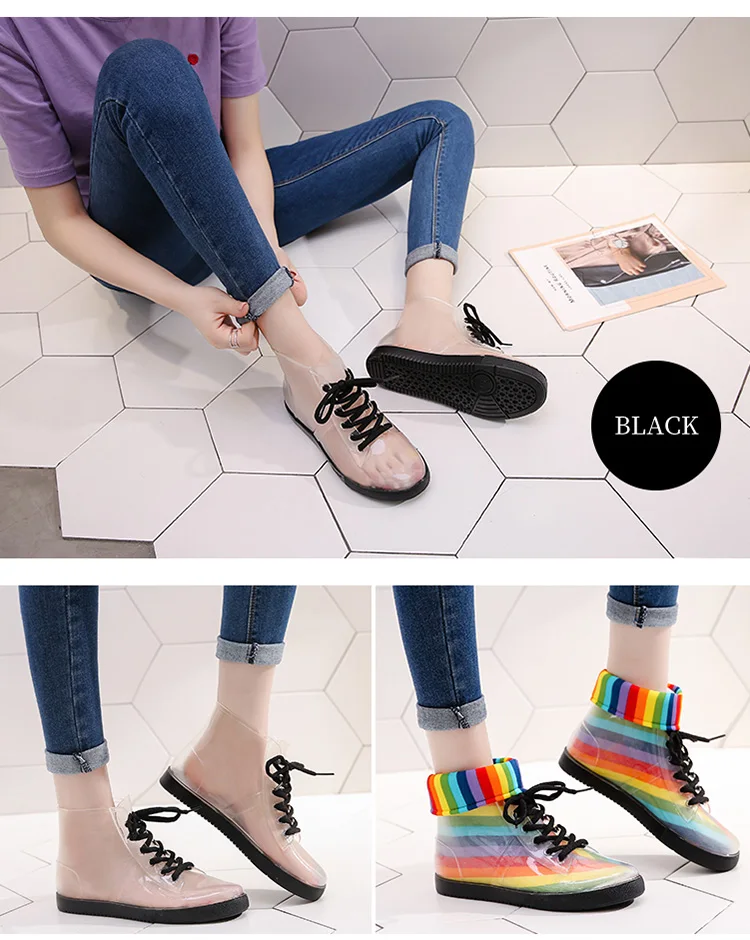 Прозрачные непромокаемые сапоги; женские сапоги; прозрачная обувь; нескользящие модные студенческие ботинки для девочек; женские ботильоны; флисовые пинетки