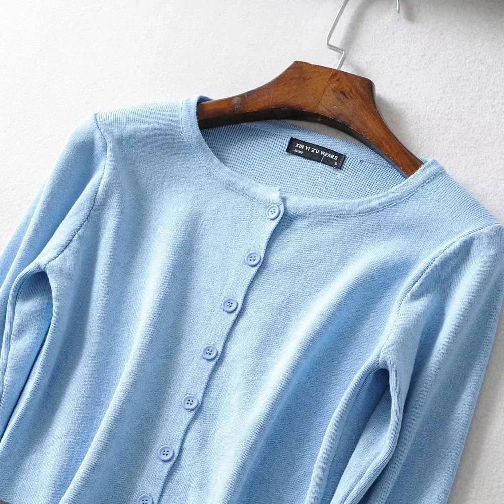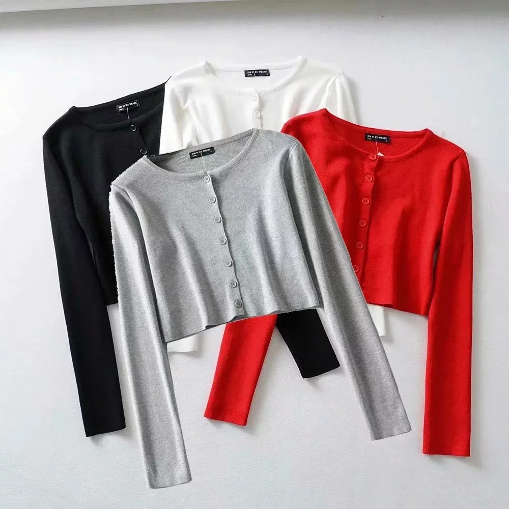 Осенние новые кардиганы женские с длинным рукавом шикарные вязаные свитера однотонные красные розовые синие Базовые укороченные кардиганы sweter зимняя одежда
