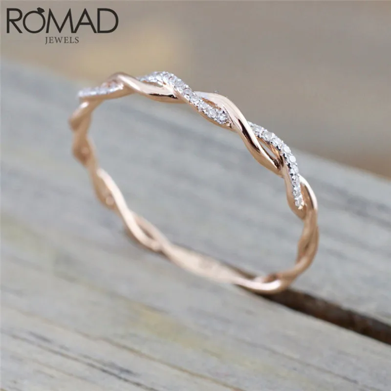 ROMAD Twist классические кольца с фианитом, обручальные кольца для женщин, подарок, роскошные Австрийские кристаллы, ювелирные изделия, кольца для пар