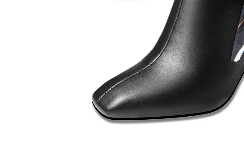 ANNYMOLI/Зимние ботильоны; женские полусапожки из натуральной кожи на молнии и блочном каблуке; обувь на очень высоком каблуке с бантом; Женская Осенняя обувь; размеры 34-39