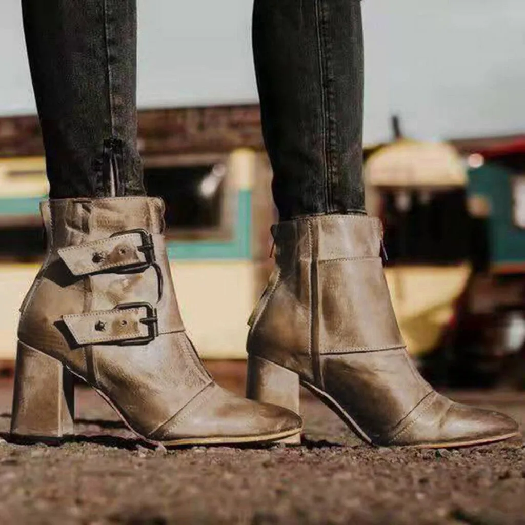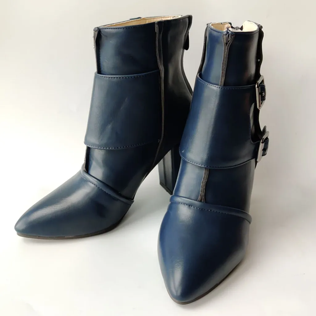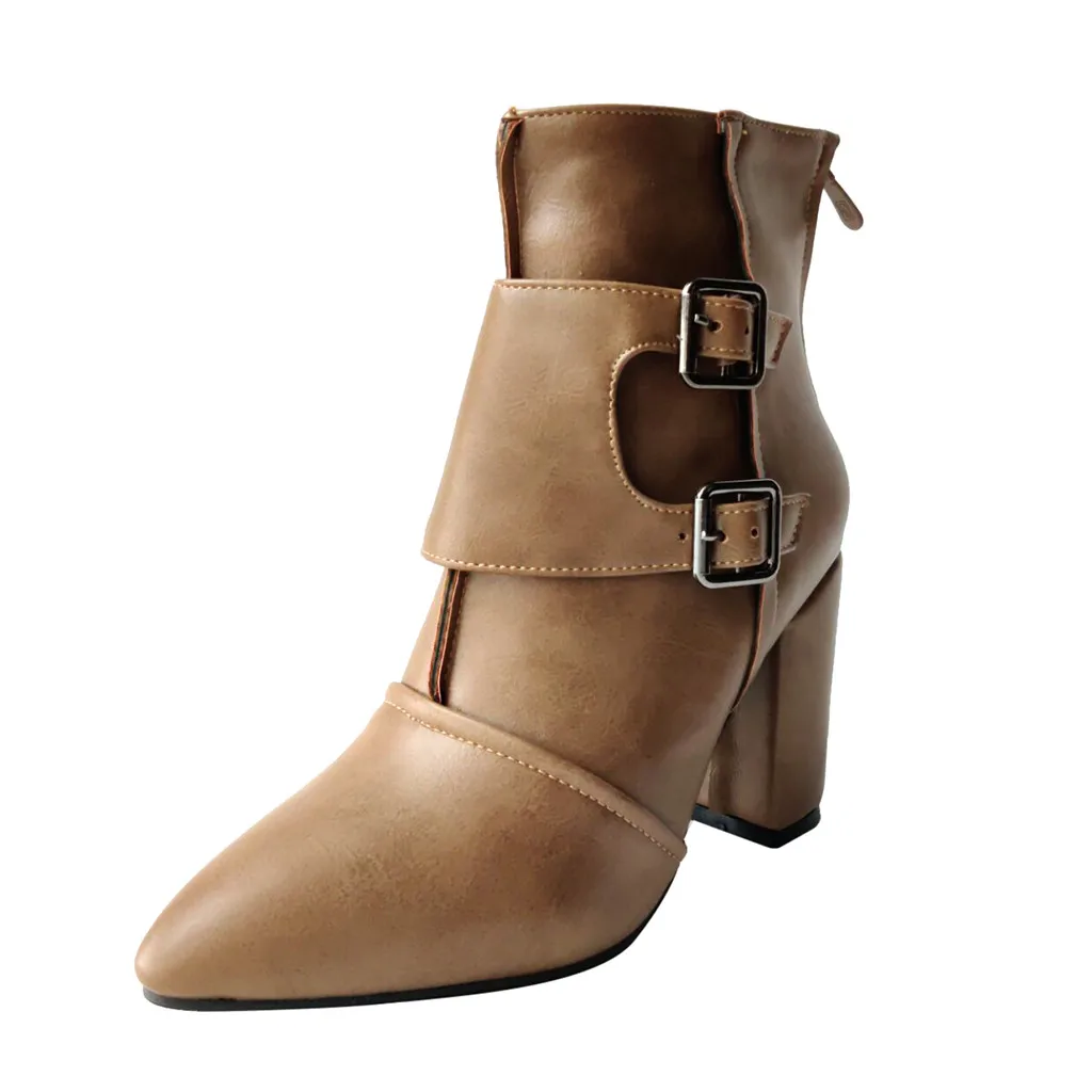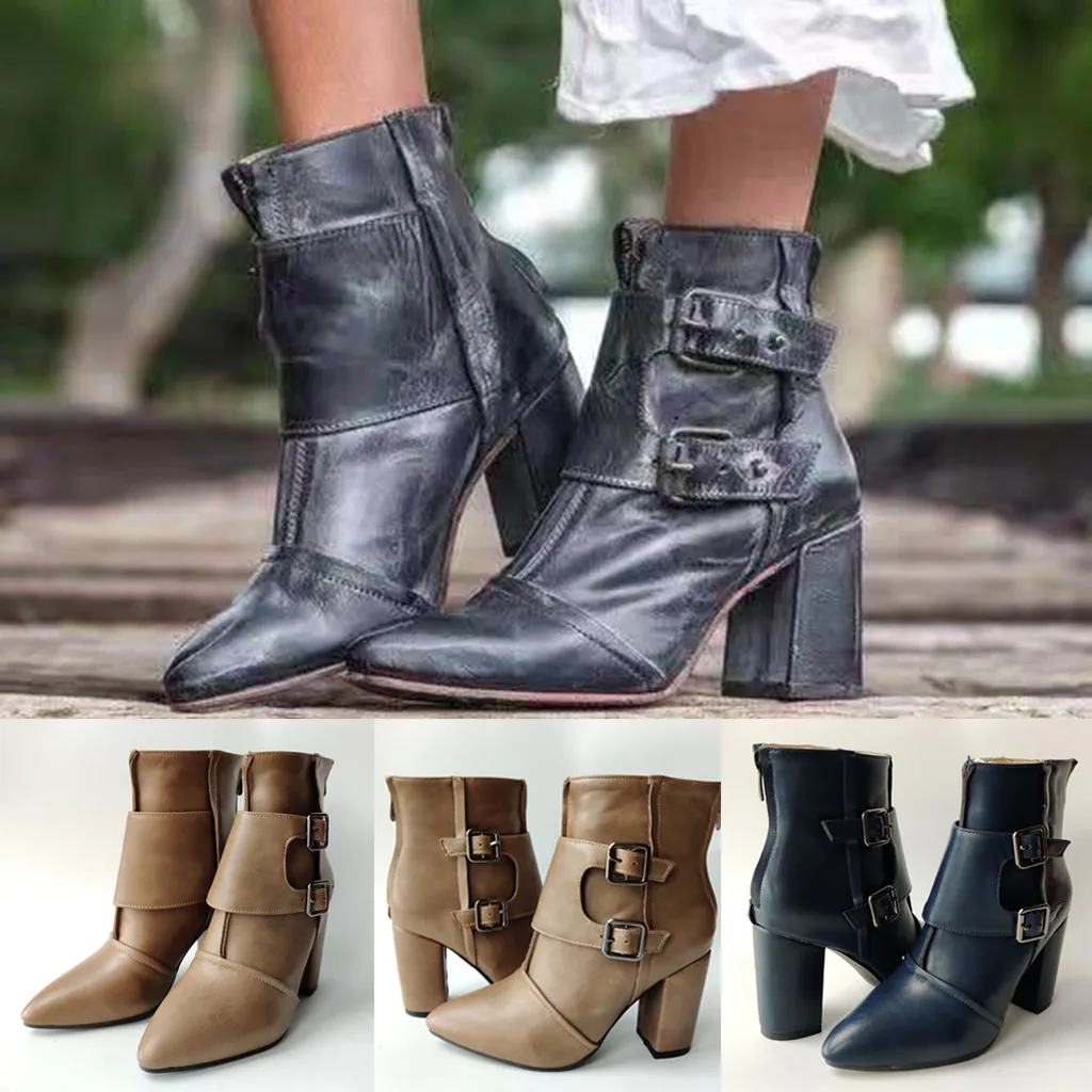 Женская повседневная обувь на толстом каблуке с острым носком и ремешком с пряжкой; рыцарские ботинки в западном стиле
