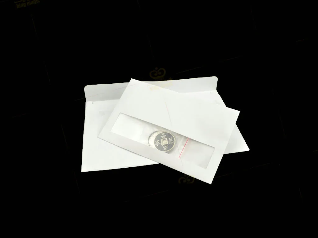 Вот классический кусок магии, используя красивые китайские монеты. Эффект настолько прямой вперед, что он предотвращает обнаружение. Используются только две монеты. Половина доллара опускается в конверт, в то время как китайская монета медленно и довольно помещается в вашу руку. Мгновенно они меняют места. Поскольку не используются сани, скептик не может обнаруживать.