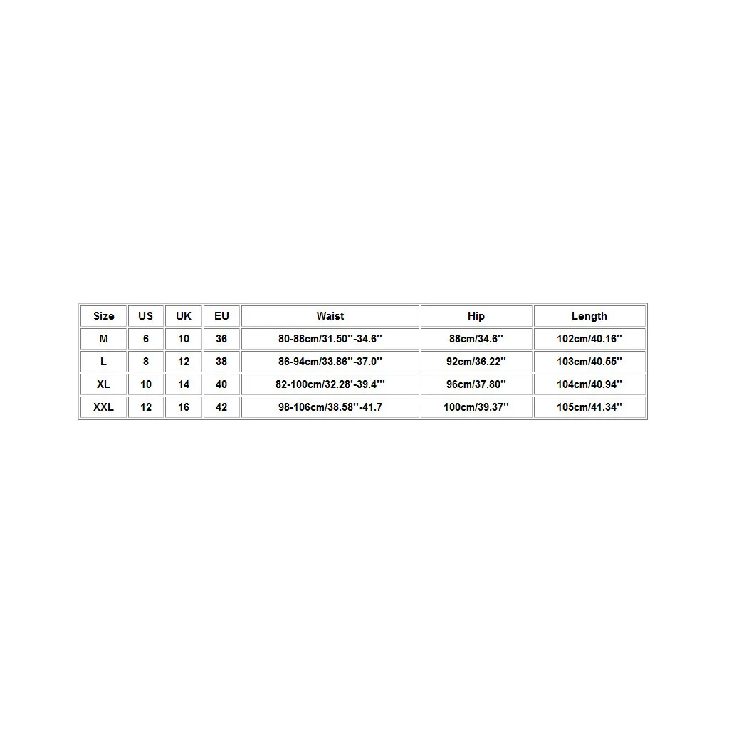 Размеры: М Свяжитесь с нами: 6 UK: 10 ЕС: 36 Талия: 80-88 см/31,50 ''-34,6'' Бедра: 88 см/34,6'' Длина: 102 см/40,16'' Размеры: L Свяжитесь с нами: 8 UK: 12 ЕС: 38 Талия: 86-94 см/33,86 ''-37,0'' Бедра: 92 см/36,22'' Длина: 103 см/40,55'' Размеры: XL Свяжитесь с нами: 10 UK: 14 ЕС: 40 Талия: 82-100 см/32,28 '-39,4'' Бедра: 96 см/37,80'' Длина: 104 см/40,94'' Размеры: XXL Свяжитесь с нами: 12 Великобритания: 16 ЕС: 42 Талия: 98-106 см/38,58 ''-41,7 Бедра: 100 см/39,37'' Длина: 105 см/41,34''