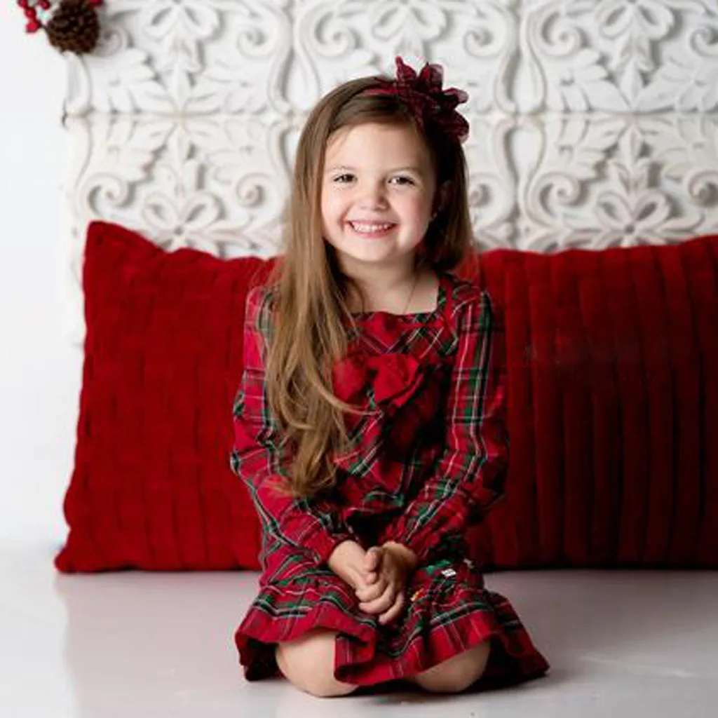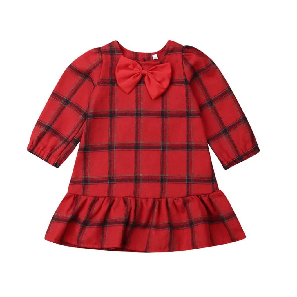 Детское хлопковое клетчатое платье принцессы с длинными рукавами для маленьких девочек на Рождество