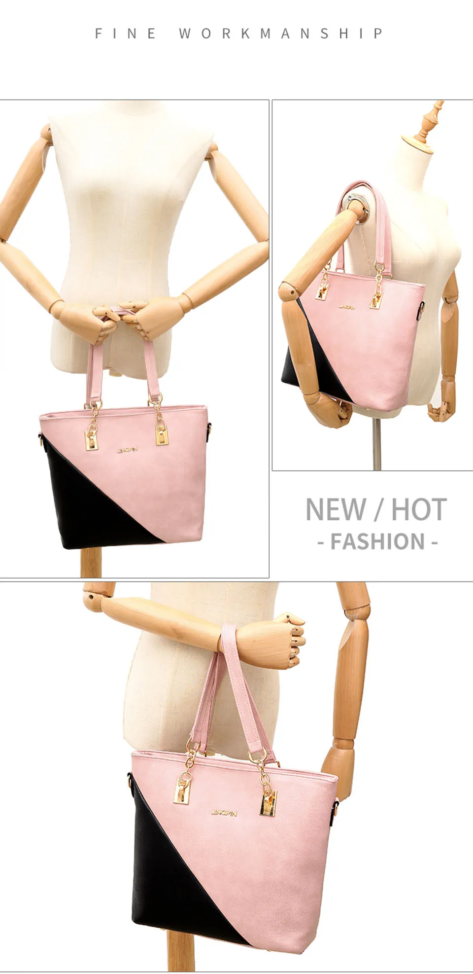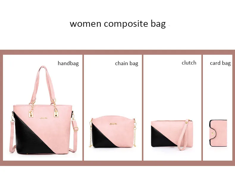 Color: pink,beige,brown,light gray,red gender: women,ladies,girls,female handbag size:30x13x29cm handle height:21cm chain bag:22x6x16cm clutch:19x1x12cm card bag:7x1x10cm style: fashion,casual material: pu leather lining:polyester closure: zip occasion: shopping,office,working, daily