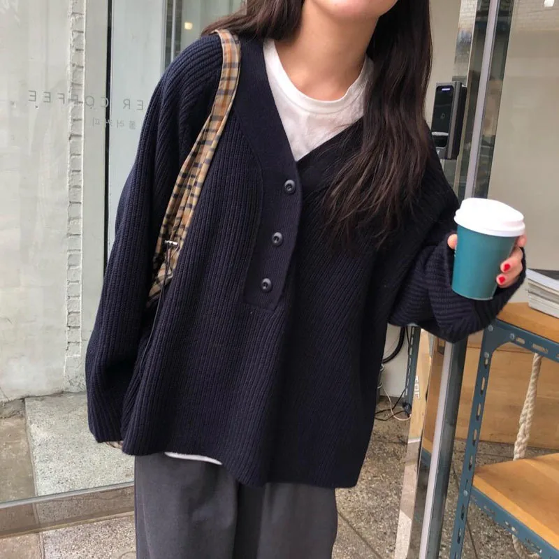 Наименование товара:Женский пуловер с длинными рукавами, свитер в стиле ретро, Однотонный свитер с v-образным вырезом, свободный свитер большого размера для студентов, GD108