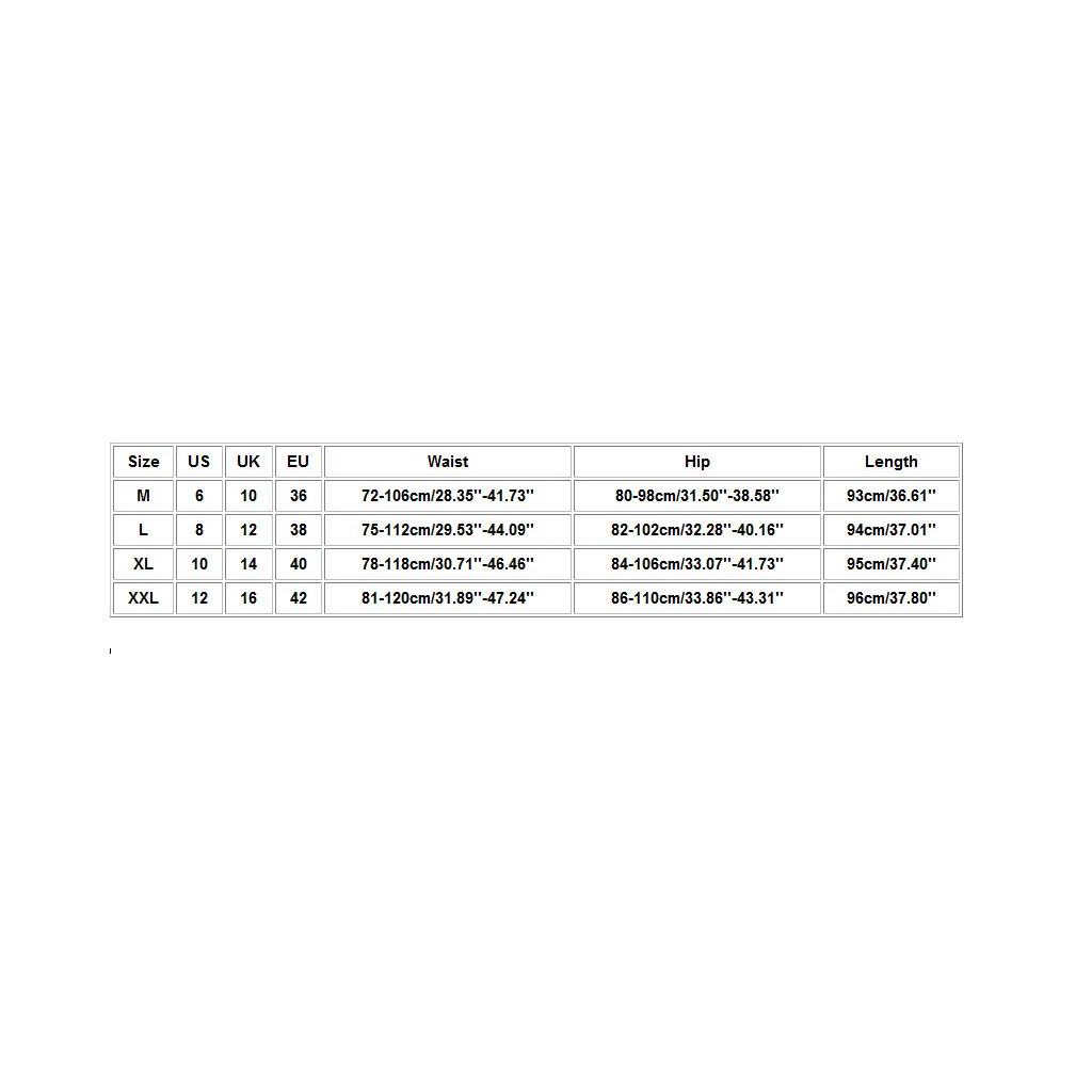 Размеры таблицей:Размер Свяжитесь с нами Великобритания ЕС Обхват талии Обхват бедер Длина М 6 10 36 72-106 см/28,35 ''-41,73'' На рост от 80 до 98 см/31,50 ''-38,58'' 93 см/36,61'' L 8 12 38 75-112 см/29,53 ''-44,09'' 82-102 см/32,28 ''-40,16'' 94 см/37,01'' XL 10 14 40 78-118 см/30,71 ''-46,46'' 84-106 см/33,07 ''-41,73'' 95 см/37,40'' XXL 12 16 42 81-120 см/31,89 ''-47,24'' 86-110 см/33,86 ''-43,31'' 96 см/37,80'' Размеры: М Свяжитесь с нами: 6 UK: 10 ЕС: 36 Талия: 72-106 см/28,35 ''-41,73'' Бедра: 80-98 см/31,50 ''-38,58'' Длина: 93 см/36,61'' Размеры: L Свяжитесь с нами: 8 UK: 12 ЕС: 38 Талия: 75-112 см/29,53 ''-44,09'' Бедра: 82-102 см/32,28 ''-40,16'' Длина: 94 см/37,01'' Размеры: XL Свяжитесь с нами: 10 UK: 14 ЕС: 40 Талия: 78-118 см/30,71 ''-46,46'' Бедра: 84-106 см/33,07 ''-41,73'' Длина: 95 см/37,40'' Размеры: XXL Свяжитесь с нами: 12 Великобритания: 16 ЕС: 42 Талия: 81-120 см/31,89 ''-47,24'' Бедра: 86-110 см/33,86 ''-43,31'' Длина: 96 см/37,80''