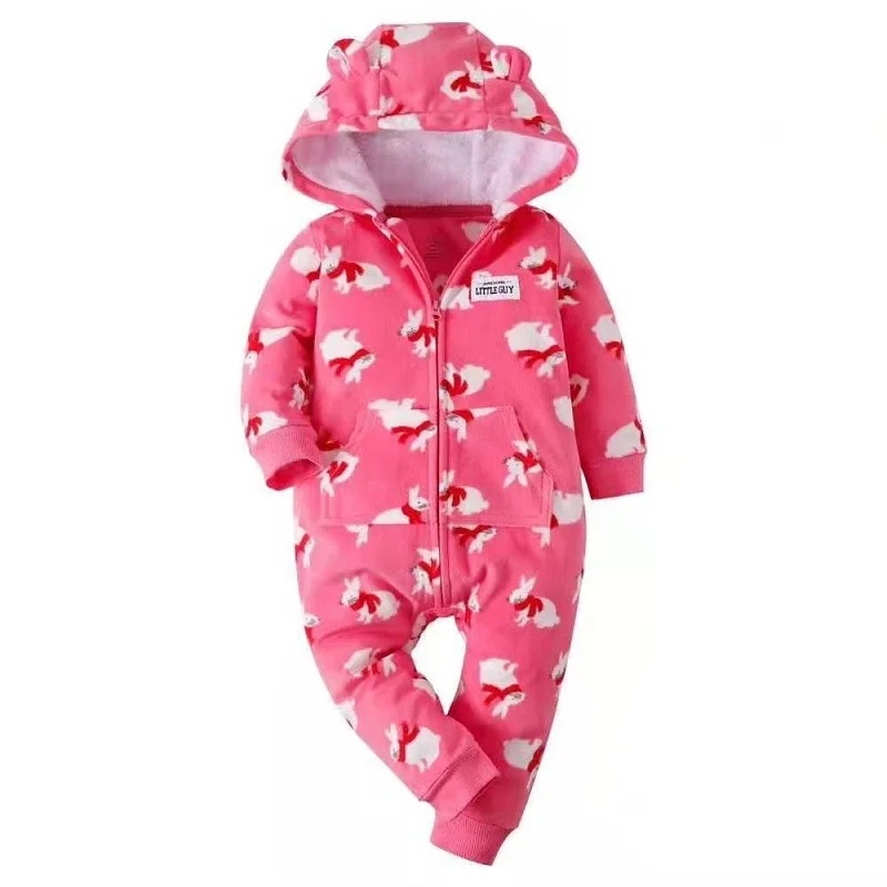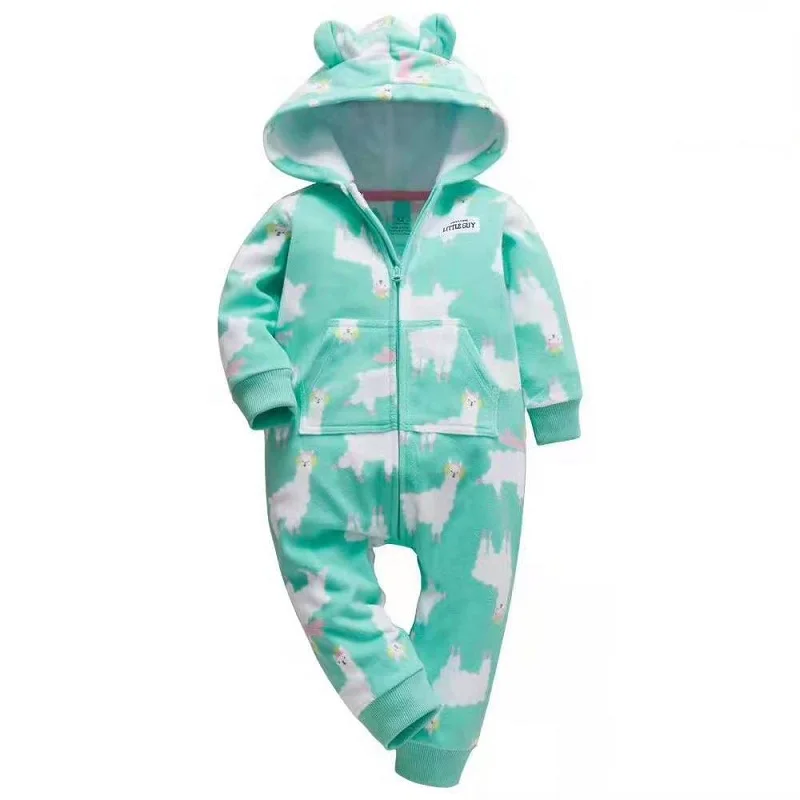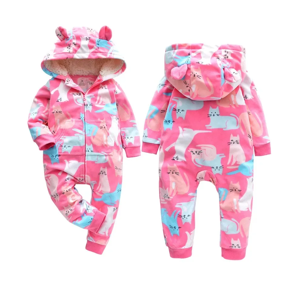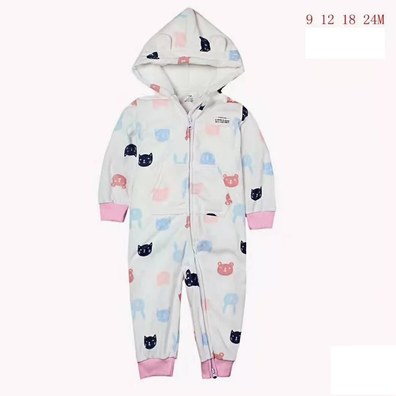 Зимняя одежда для маленьких девочек флисовый комбинезон на молнии с длинными рукавами и капюшоном с изображением животных, комбинезон для новорожденных, комбинезон для новорожденных мальчиков USD 9,45/Шт/Лот 1