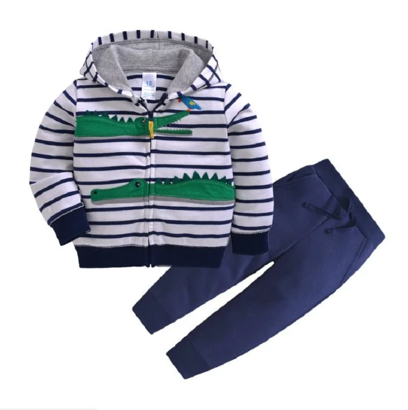Осенняя одежда Модный комплект для маленьких мальчиков Одежда для новорожденных свитер с длинными рукавами + комбинезон с капюшоном в полоску + штаны Одежда для новорожденных 2019 USD 17,92/Комплект/лот 1