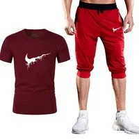 Модные новые высококачественные Брендовые мужские футболки, костюм из 2 предметов, Повседневная футболка с короткими рукавами и круглым вырезом, Модная хлопковая Футболка с принтом и шорты