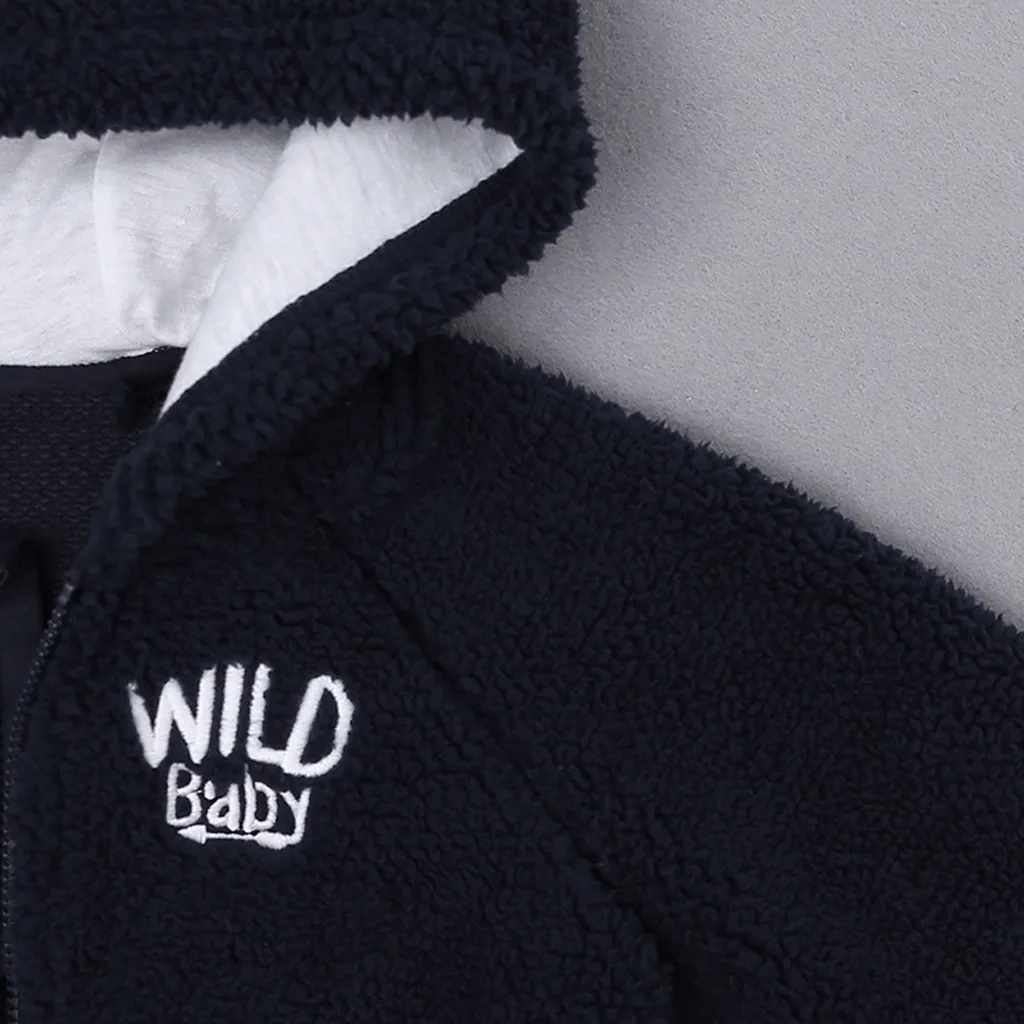 Теплое пальто с капюшоном и длинными рукавами для новорожденных мальчиков и девочек с рисунком медведя и буквами зимний комбинезон