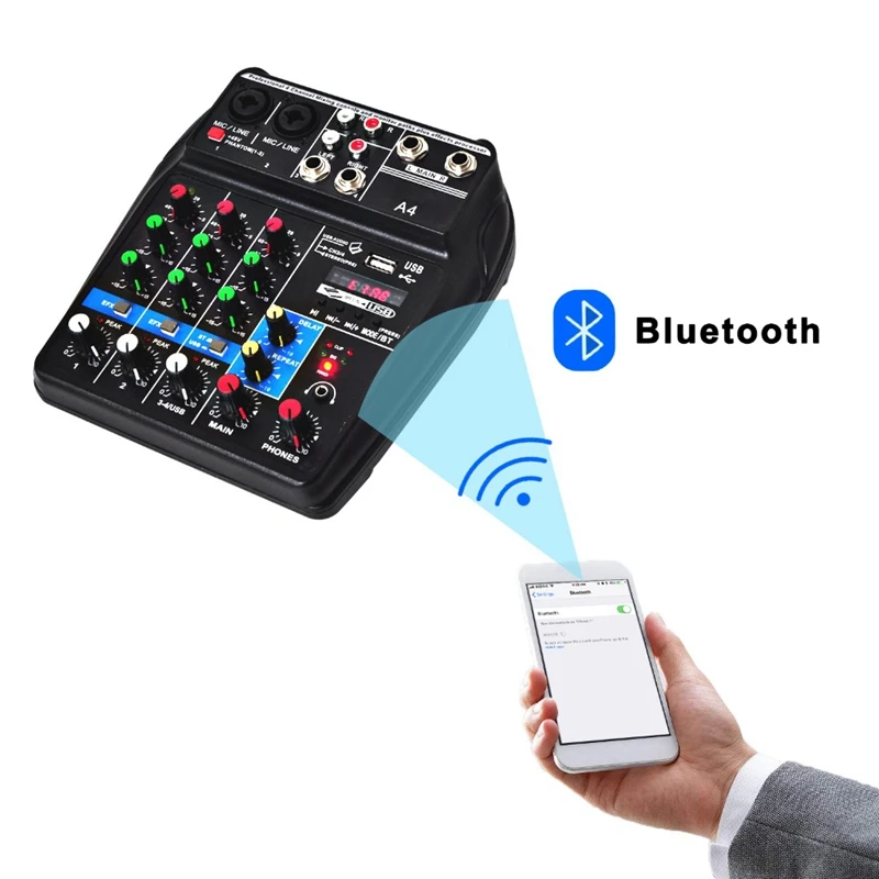 ЕС разъем A4 звуковая микшерная консоль Bluetooth Usb Запись воспроизведения компьютера 48В фантомная мощность задержка Repaeat эффект 4 канала Usb Aud