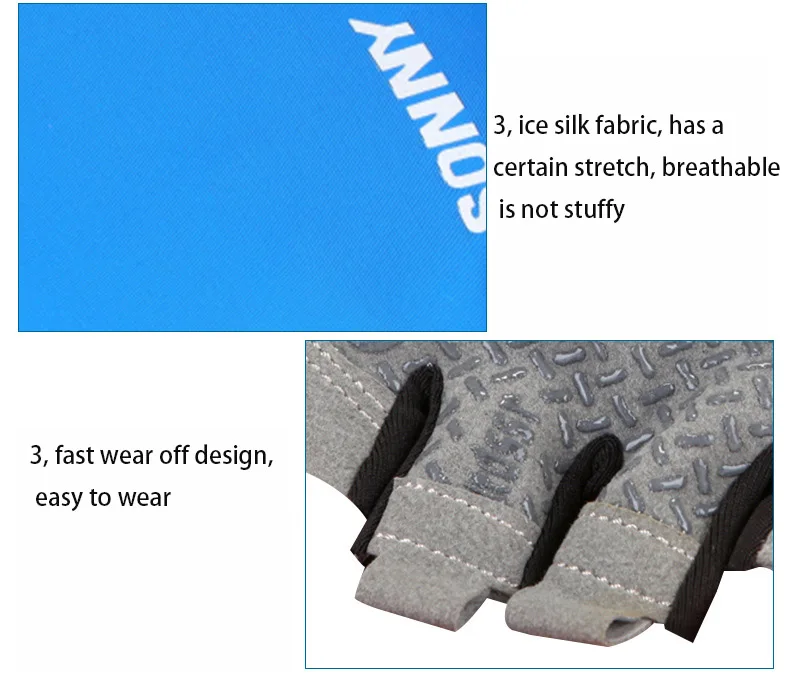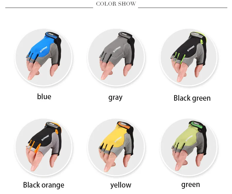 Бренд: FUXIAOGE Материал: ледяной шелк Классификация использования: Велоспорт, спортивные перчатки Пол: нейтральный/мужской и женский Функция: Нескользящая Рисунок: однотонный Артикул: FXG21 Стиль: перчатки с открытыми пальцами Цвет: лед шелк половина пальца черный оранжевый, лед шелк половина пальца Черный Зеленый, лед шелк половина пальца серый, лед шелк половина пальца синий Размер: S, M, L Подходит для сезона: весна, осень, лето