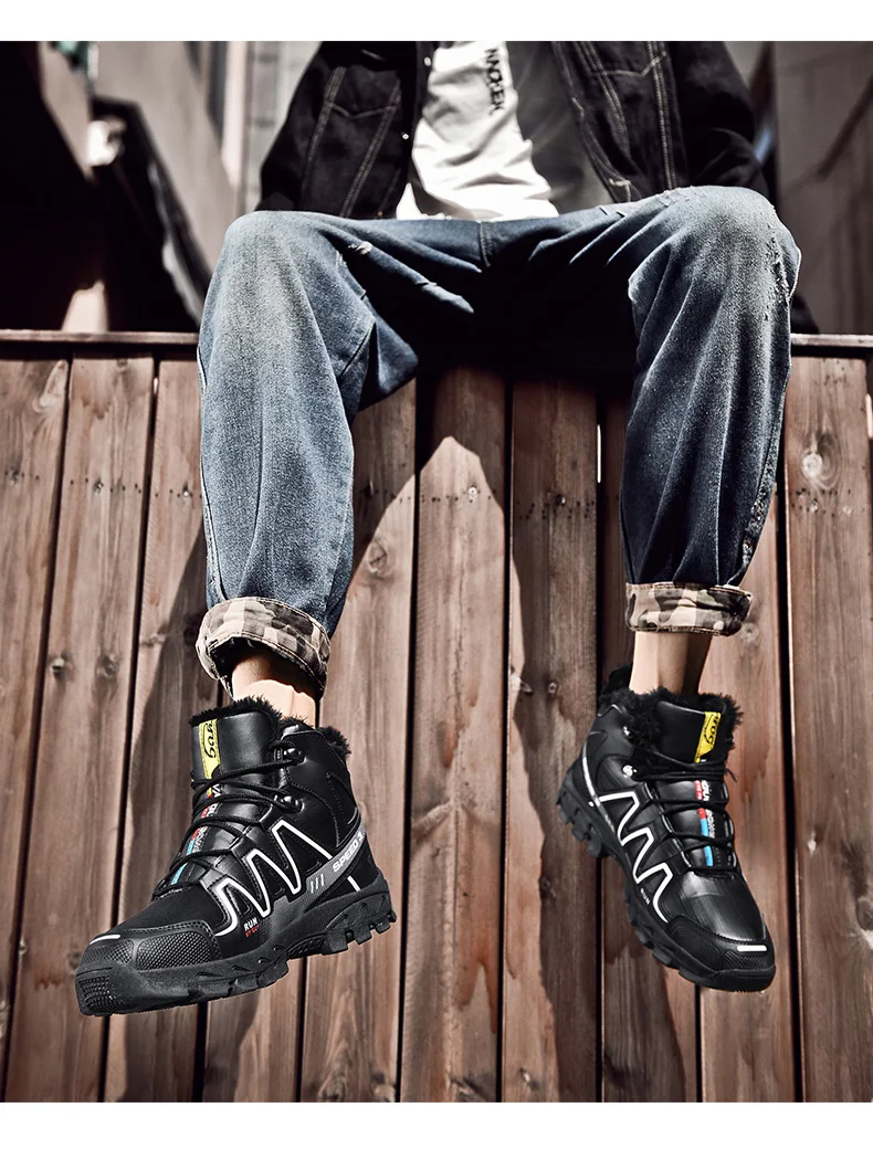 Мужские ботинки из натуральной кожи теплые меховые полусапожки на шнуровке
