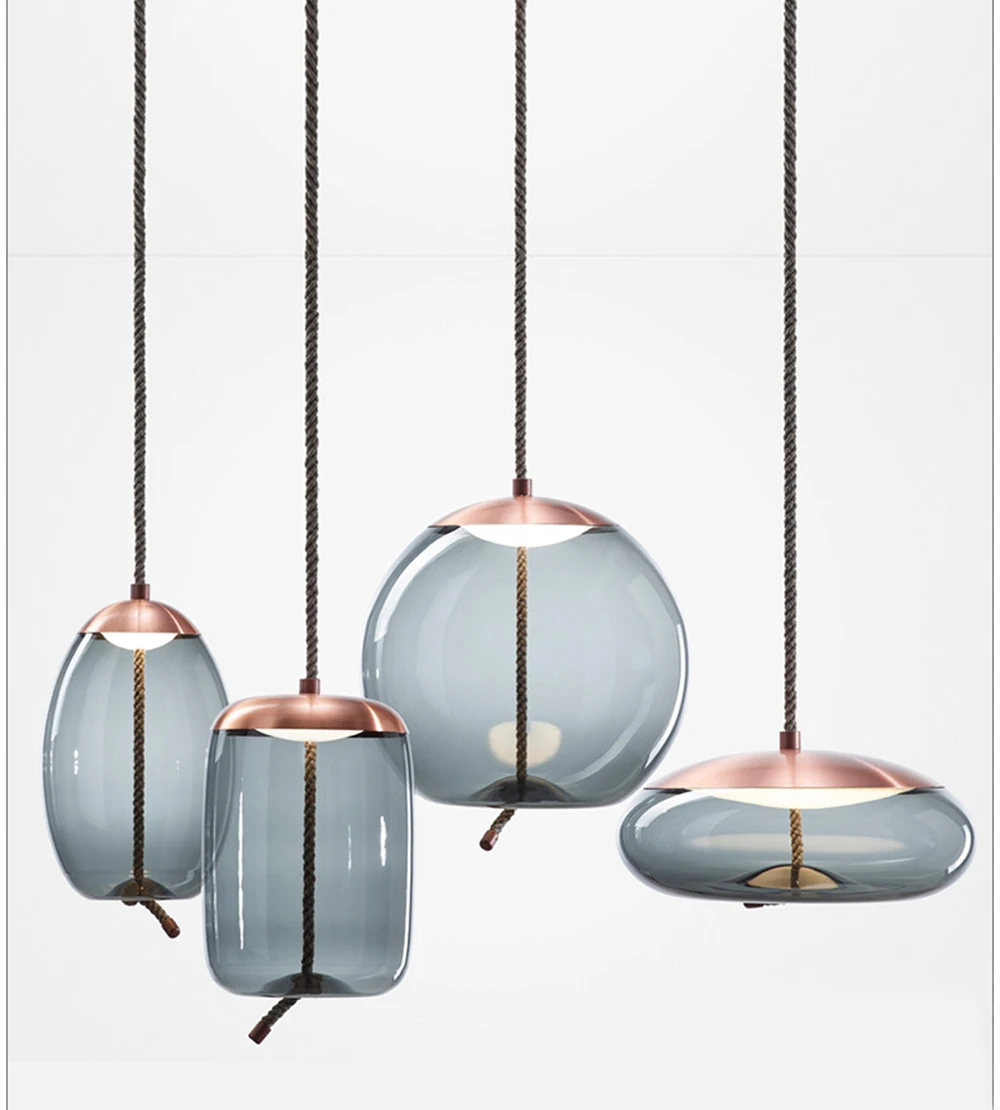 Скандинавский пост-современный канделябр из пеньковой веревки, стеклянная люстра для ресторана, оконная планка, Модная креативная личность, комбинированный светильник, светильник, светильники, декоративный светильник