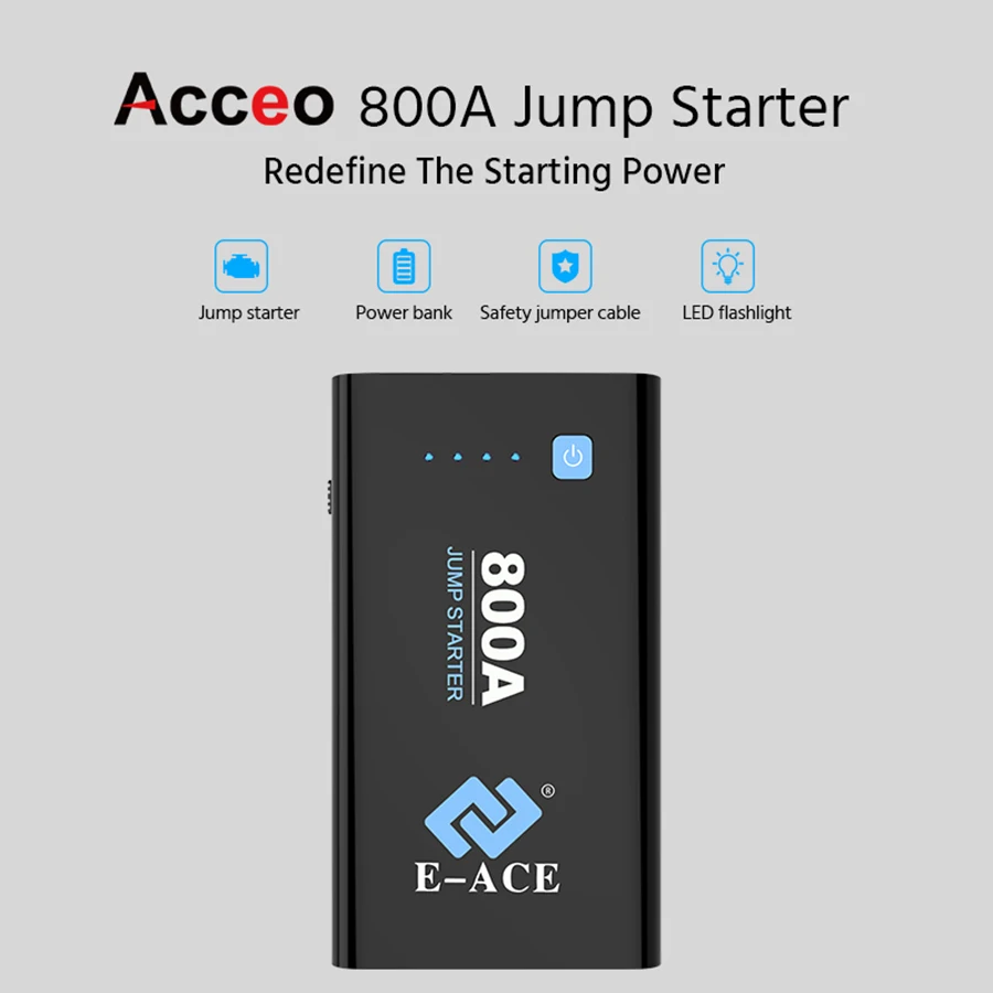 ★【Супер мощный и mini】Этот компактный (145 мм * 83 мм * 25 мм) и легкий (585 г), но мощный стартер с пиковым выходом 800A не имеет проблем с запуском большинства транспортных средств с газовыми двигателями до 4.0L или дизельными двигателями до 2.4L.