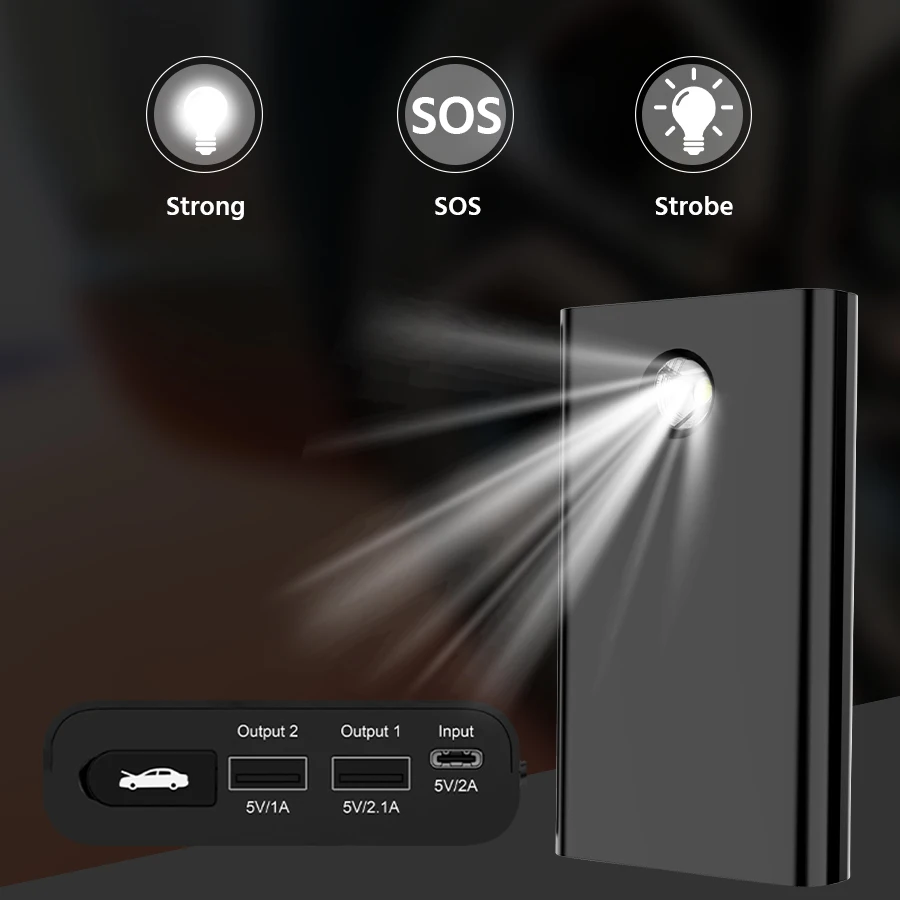 ★【 3 в 1 Многофункциональный светодиодный flashlight】Стартер аккумуляторной батареи имеет встроенный светодиодный фонарик с 3 режимами (освещение/SOS/Стробоскоп) для аварийного и ночного использования. Вы можете использовать этот автомобильный стартер для освещения или для сигнала о чрезвычайной ситуации.