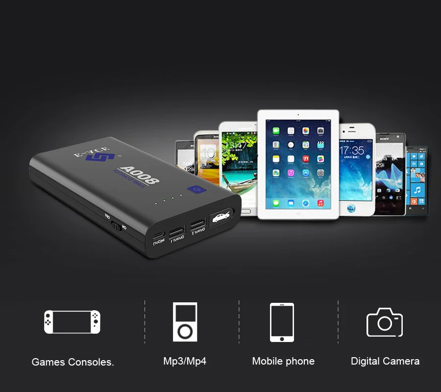★【 Высокоскоростной зарядный порт 】Помимо обычных зарядных портов, этот портативный стартер также оснащен интеллектуальным выходом USB, который обеспечивает самую быструю скорость зарядки для ваших портативных электронных устройств.