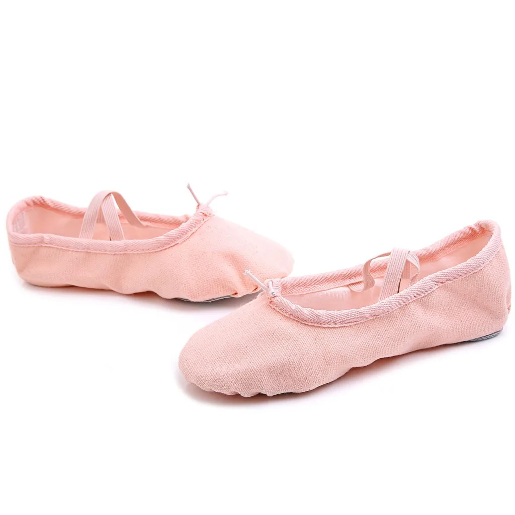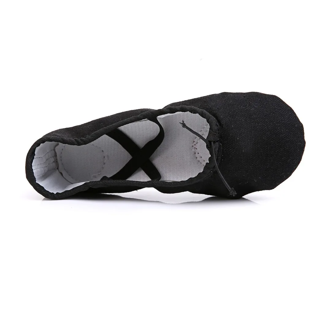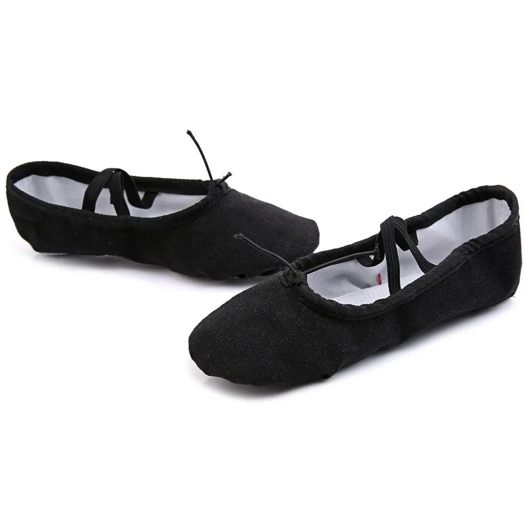 Балетки для девочек с эластичными лентами; Танцевальная обувь; парусиновая обувь на плоской подошве для гимнастики; обувь с раздельной подошвой