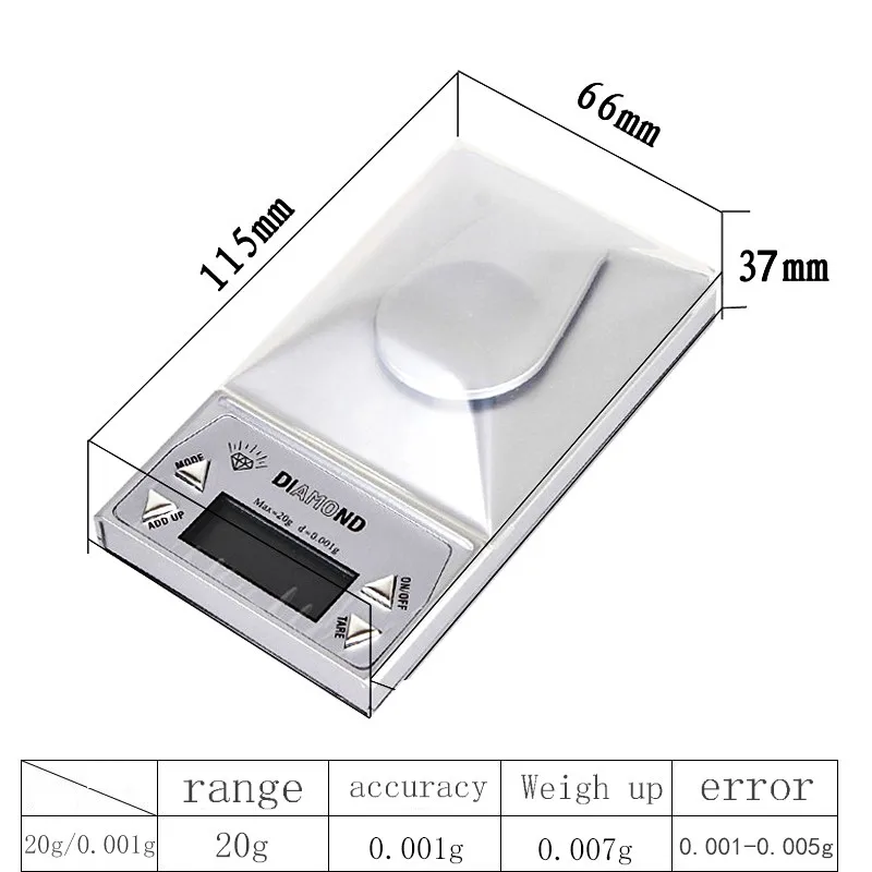 -- Точные весы: точные и профессиональные цифровые весы, 10g/20g емкость и 0,001g точность. Идеально подходит для взвешивания лекарств, порошка, ювелирных изделий и многое другое.