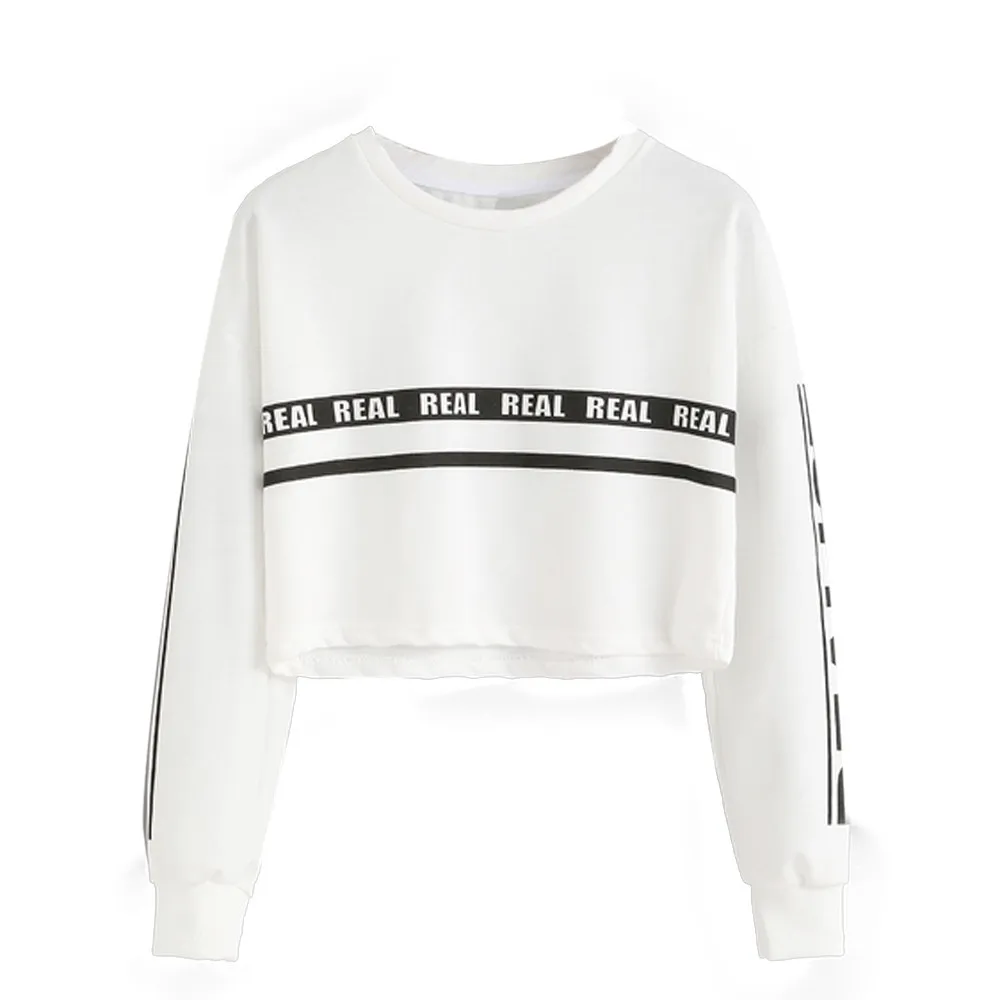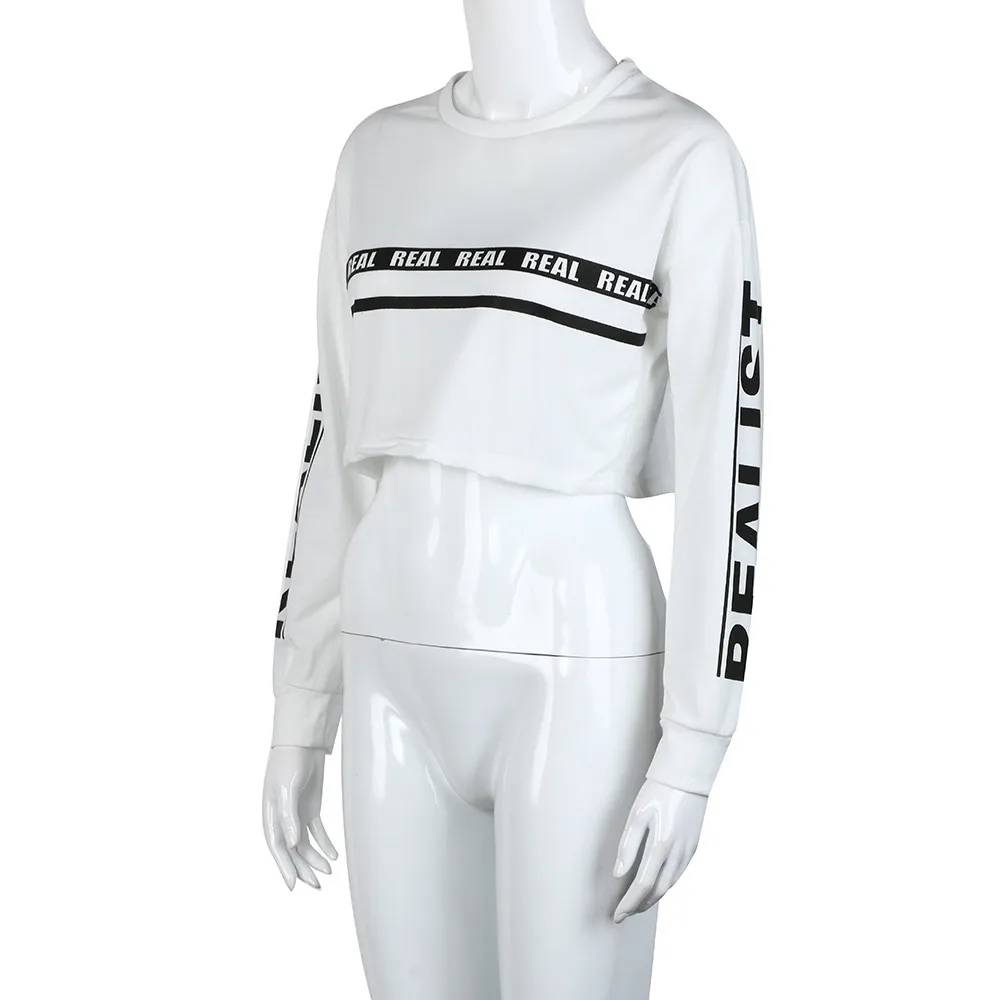 Kpop верхняя одежда Женская мода белый буквенный принт укороченный свитер Топ Блузка с длинным рукавом зима бархат утолщение модное пальто