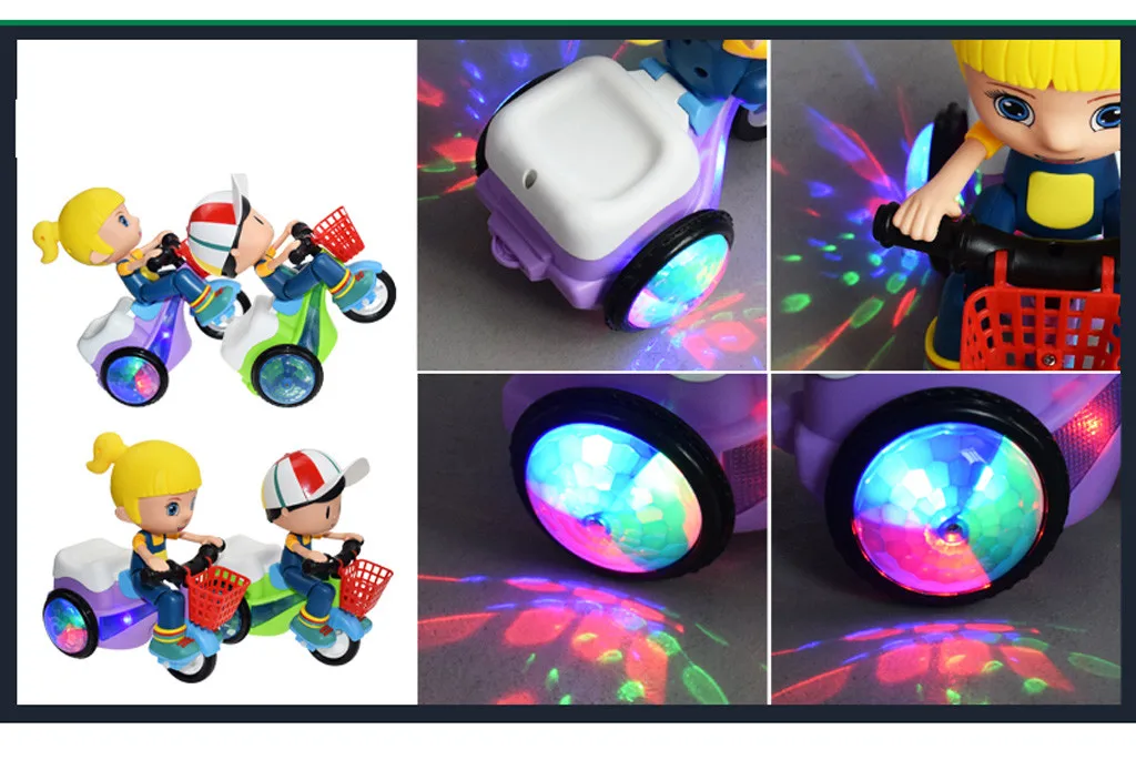 Вращающийся на 360 градусов Электрический трехколесный велосипедный музыкальный светильник, игрушка, подарок для детей