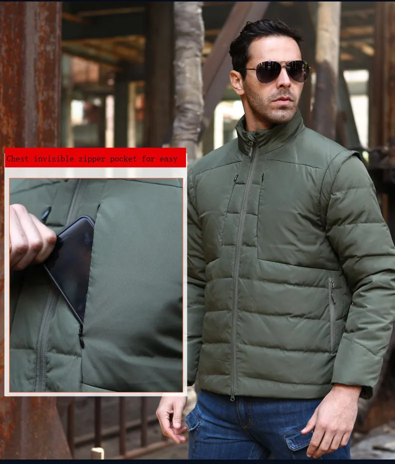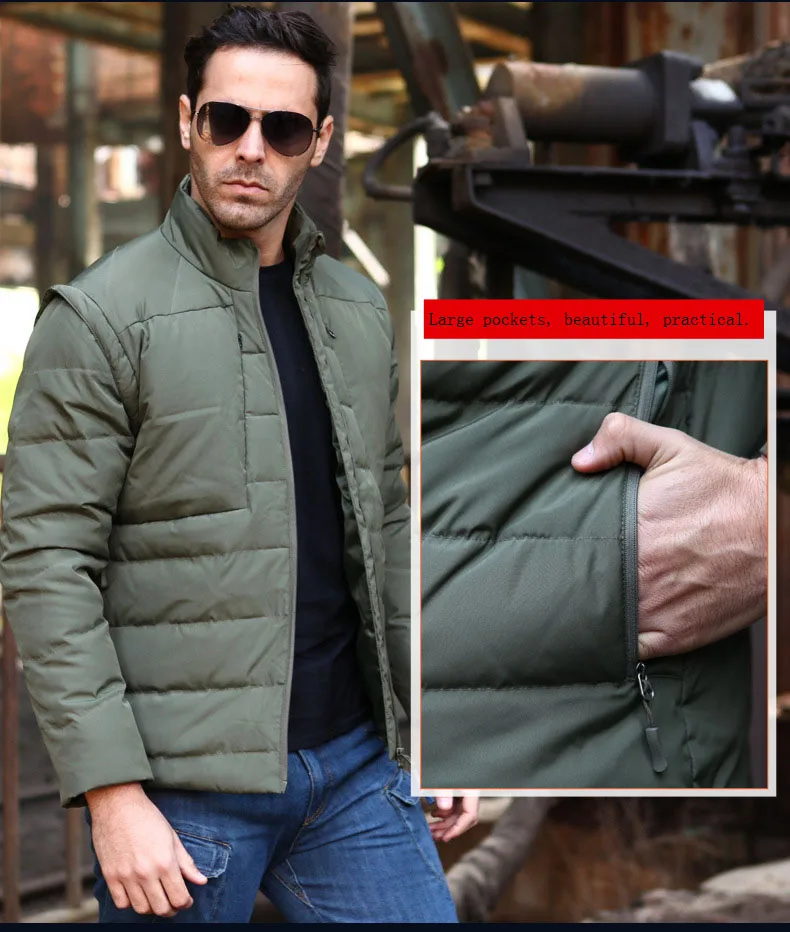 Верхняя одежда в стиле милитари, теплое пальто, парки, белый пуховик на утином пуху, Мужская съемная зимняя куртка, Сверхлегкий пуховик, повседневная куртка