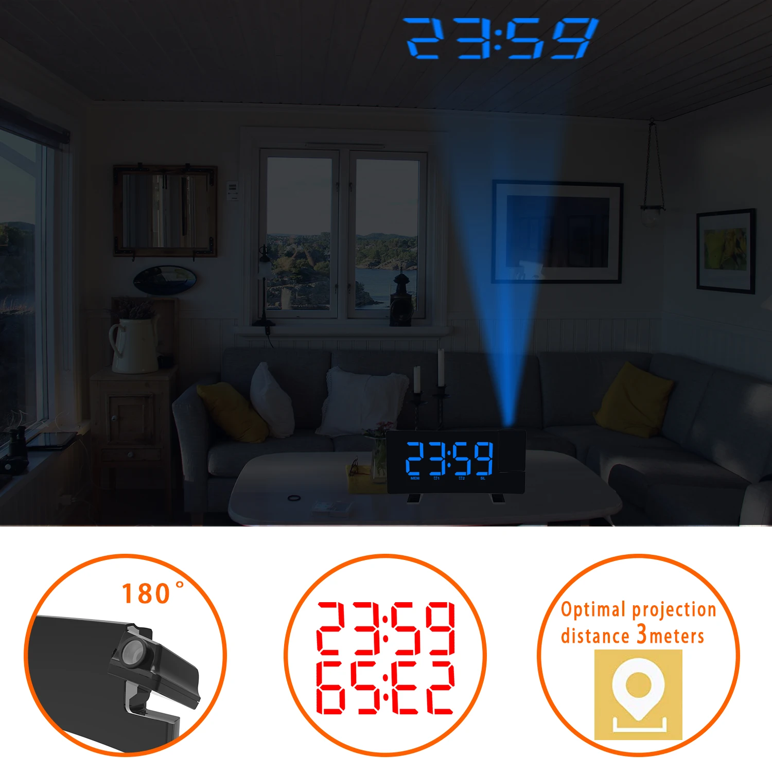 Время может быть проецировано на стену, и вы можете настроить фокусное расстояние до тех пор, пока не появится четкое изображение.
