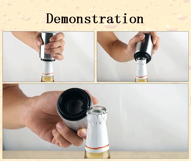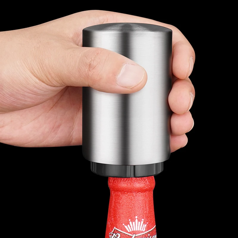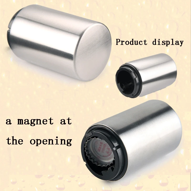 Features: 1. Automatic and effortless2. Easy to use(just put the opener onto the bottle and press) 3. Can be used for business gifts, housewarming, awards and so on 4. Applied to beer bottle opener, widely used for bars, hotels, restaurants, party venue 5. Dimensions: 8.5 X 5.3 cm 6. Color: Silver 7. Material: Stainless Steel