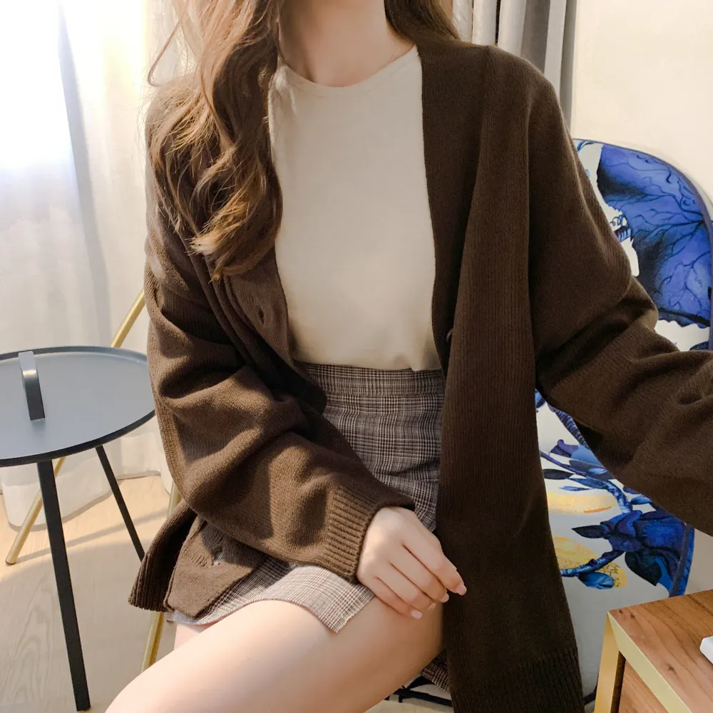 Милая верхняя одежда в корейском японском стиле, женская верхняя одежда с длинным рукавом для девушек в стиле преппи, повседневный Свободный вязаный свитер на пуговицах, пальто 9110
