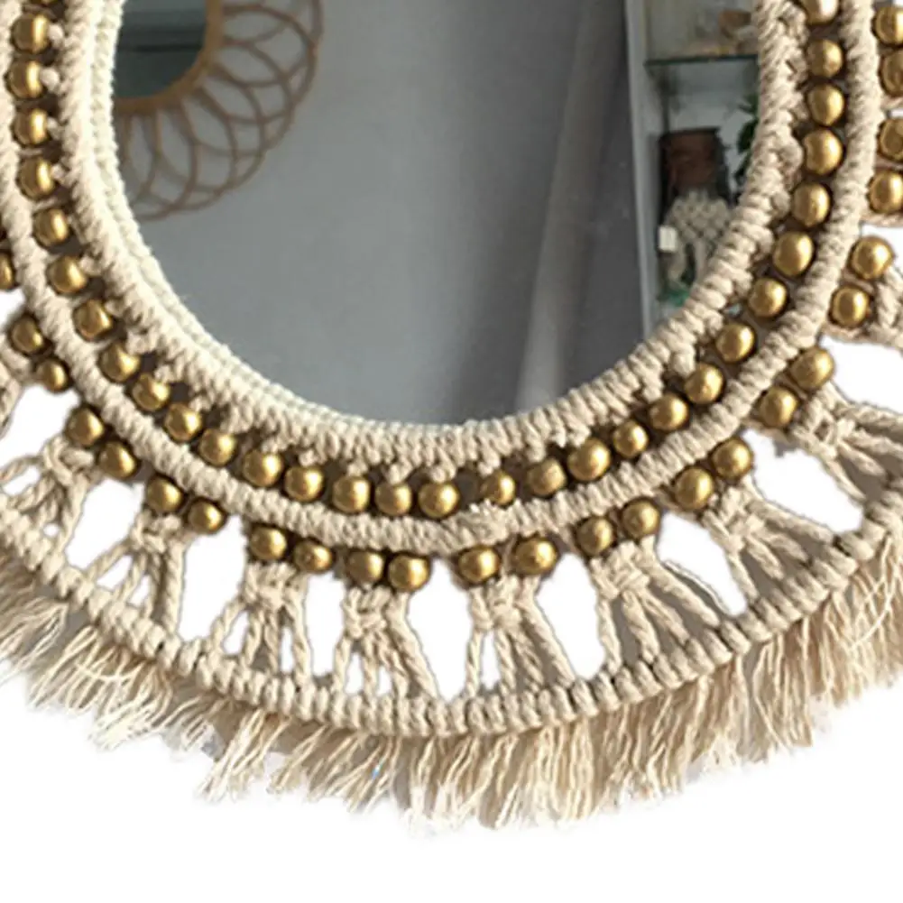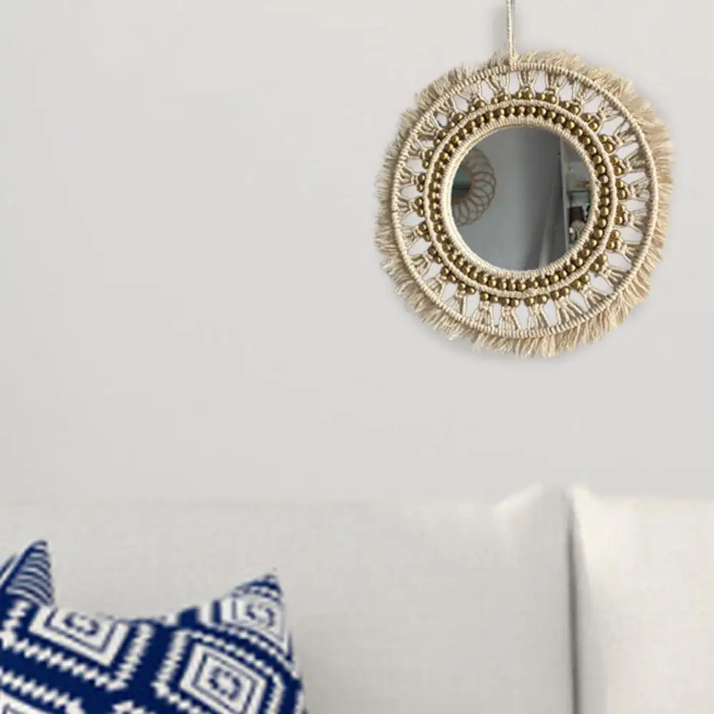 3. Круглое Настенное подвесное зеркало макраме добавит размер в пространство вашего дома. Он привнесет в ваш декор богемский народный и винтажный стиль. Его можно разместить отдельно или сложить вместе с другими, он отлично сочетается с зеркалом из ротанга. Это оригинальное настенное зеркало идеально подходит для домашнего декора в винтажном деревенском стиле