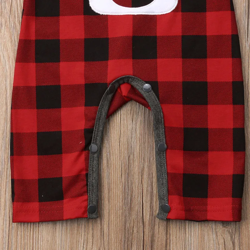 Рождественский хлопковый комбинезон для маленьких мальчиков и девочек; Красный и черный цвета в клетку!
