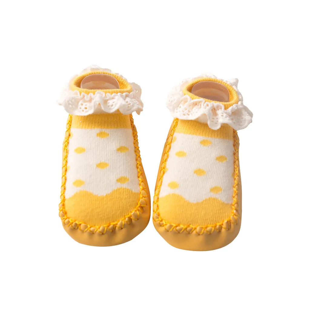 Милые теплые носки-тапочки с оборками для новорожденных мальчиков и девочек Нескользящие Детские носки