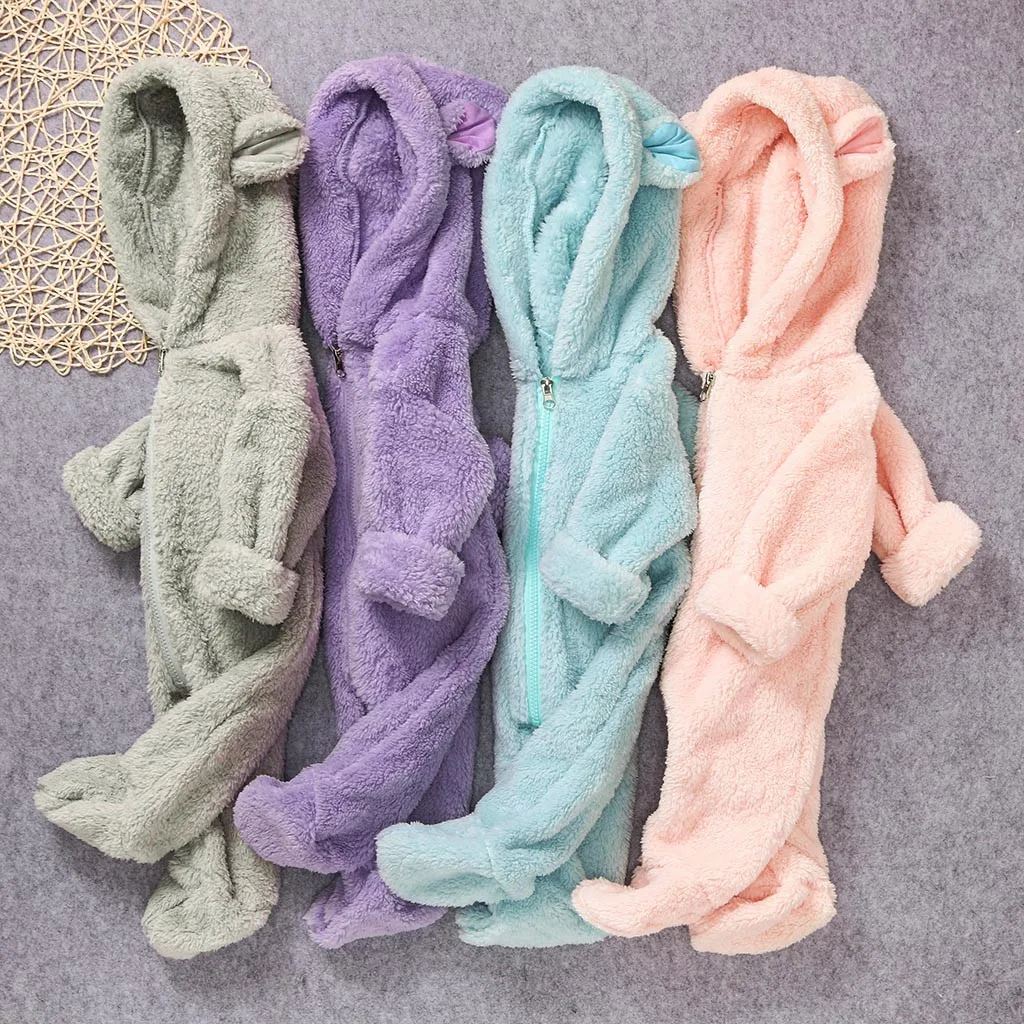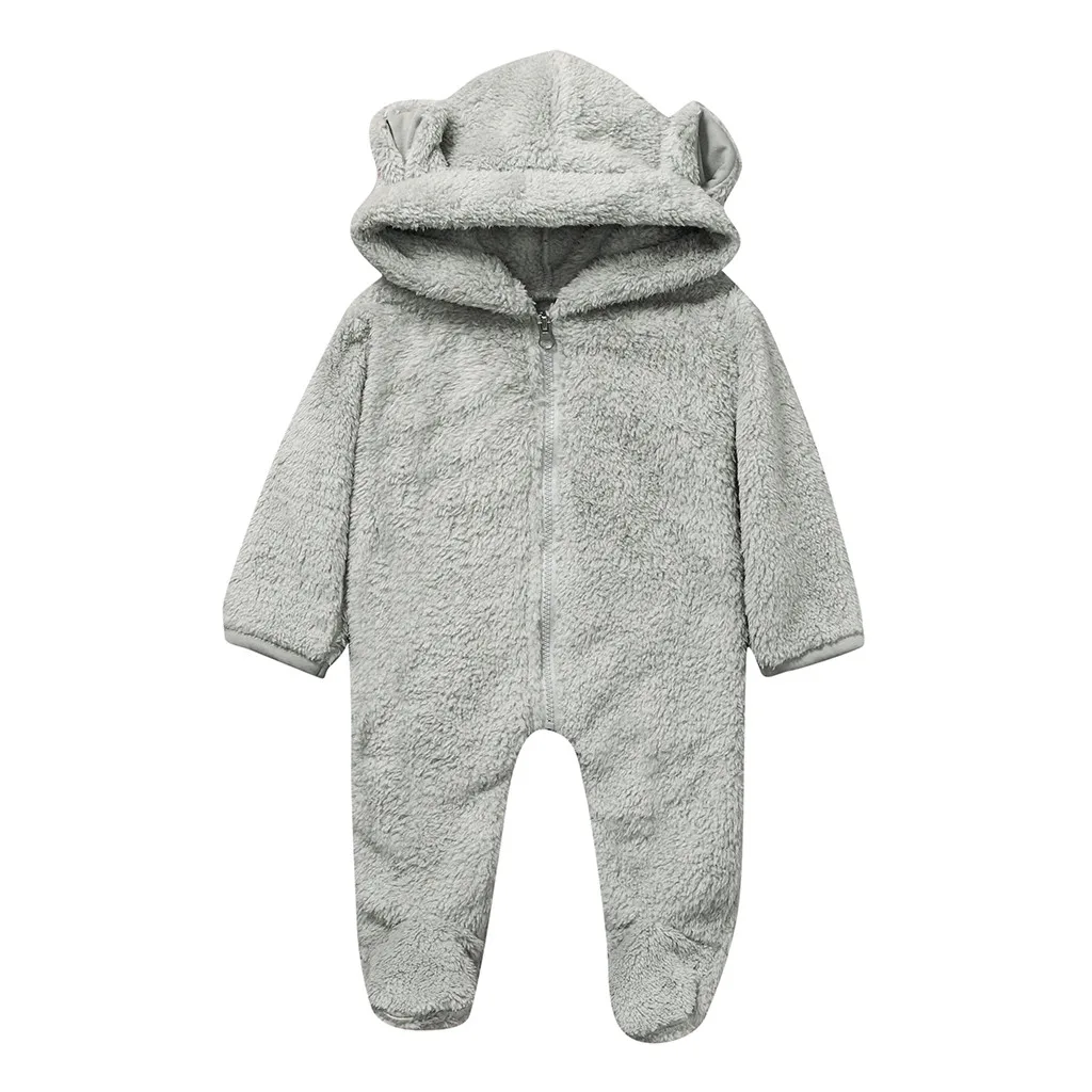 Новорожденный мальчик Зимний флисовый комбинезон; Однотонный комбинезон с капюшоном; Теплое пальто; Верхняя одежда