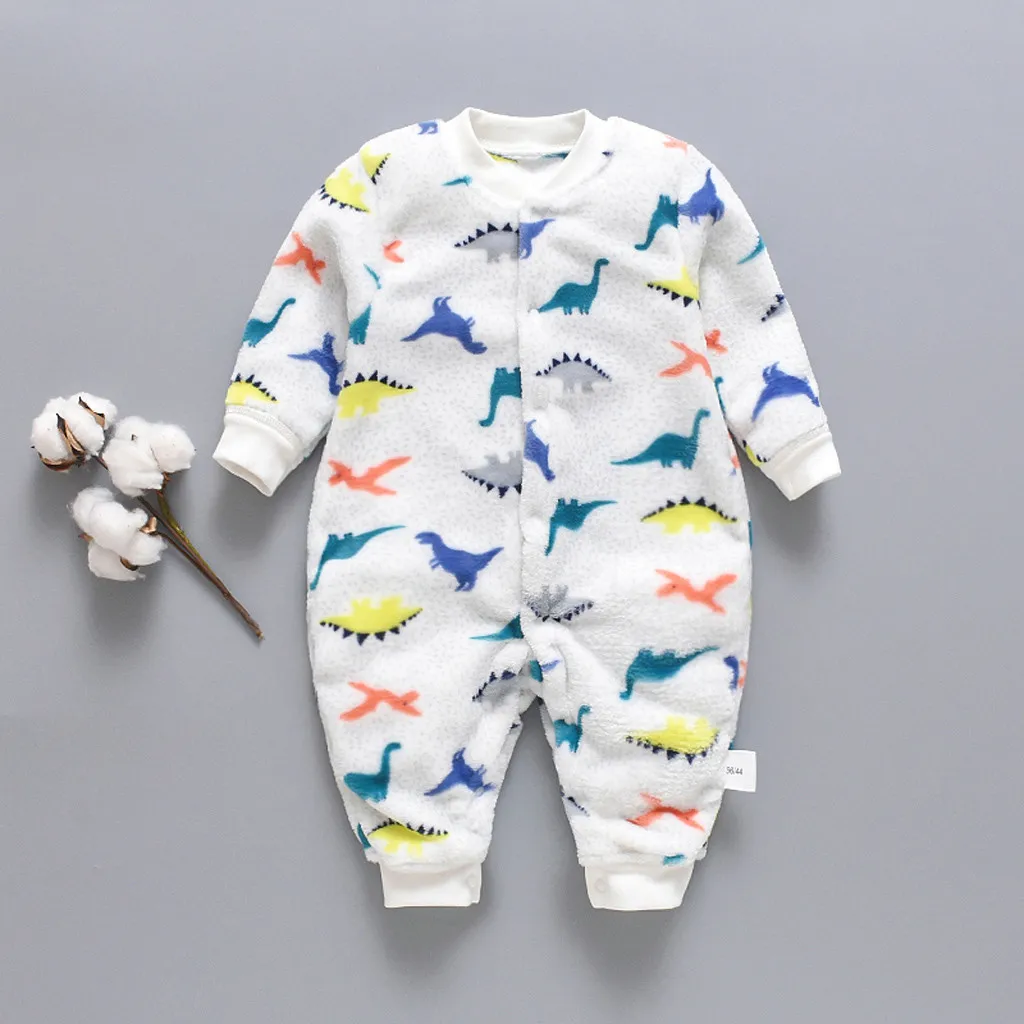 2019 Одежда для новорожденных; Сезон осень-зима Детский комбинезон с принтом динозавра; Теплый комбинезон из мягкого флиса для маленьких мальчиков и девочек; Пижама