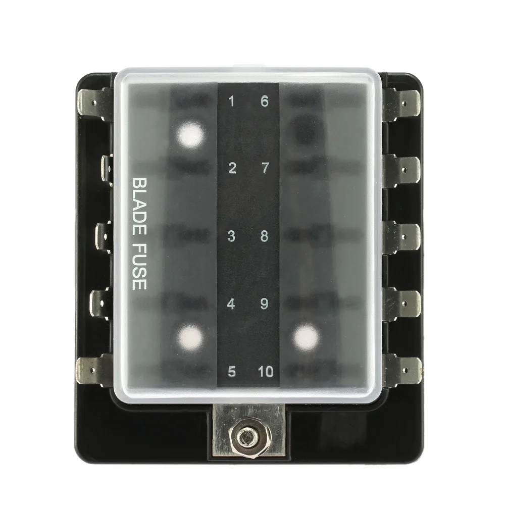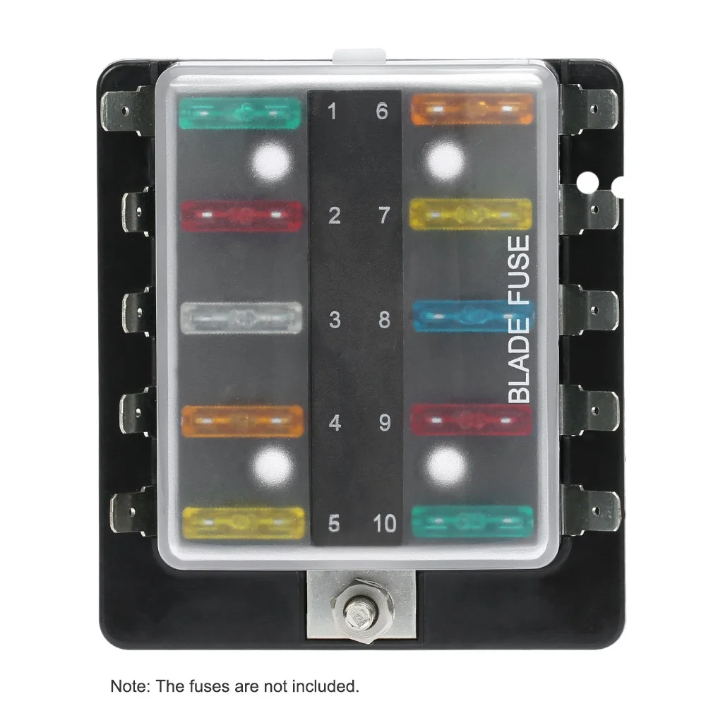 | Этот блок предохранителей подходит для всех видов автомобильного и морского применения, включая 6 в, 12 В и 24 В (максимальное напряжение 32 в). Особенности: Блок предохранителей 10 способов. Прозрачная пластиковая крышка защищает предохранители от пыли, грязи и брызг. Обложка с нажимная защелка дизайн прост в эксплуатации. Каждый держатель предохранителя пронумерован, чтобы сделать установку и идентификацию предохранителя наиболее легкой. Может быть закреплен через 4 предварительно отверстия. Технические характеристики: Принимающий предохранитель: стандартный предохранитель лезвия (ATO / ATC) Количество цепей/слотов предохранителя: 10 Положительное соединение: шпилька M5 (болт 5 мм) Выходные соединения: стандартные клеммы «лопатка» 6,3 мм Номинальная сила тока на схему/предохранитель: 30 А (макс.) Номинальная сила тока в коробке: 100 А (макс.) Напряжение: 32 В постоянного тока (макс.) Размеры: прибл. 9,5*8,5*3,5 см Размер посылка: 11*10*4 см/4,3*3,9 * дюйма Вес посылка: 122 г/4,3 унции Комплекпосылка ция: 1 * держатель предохранительной коробки Примечание: Наша продукция-блок предохранителей, предохранитель на картинке не входит в комплект нашего товара. |