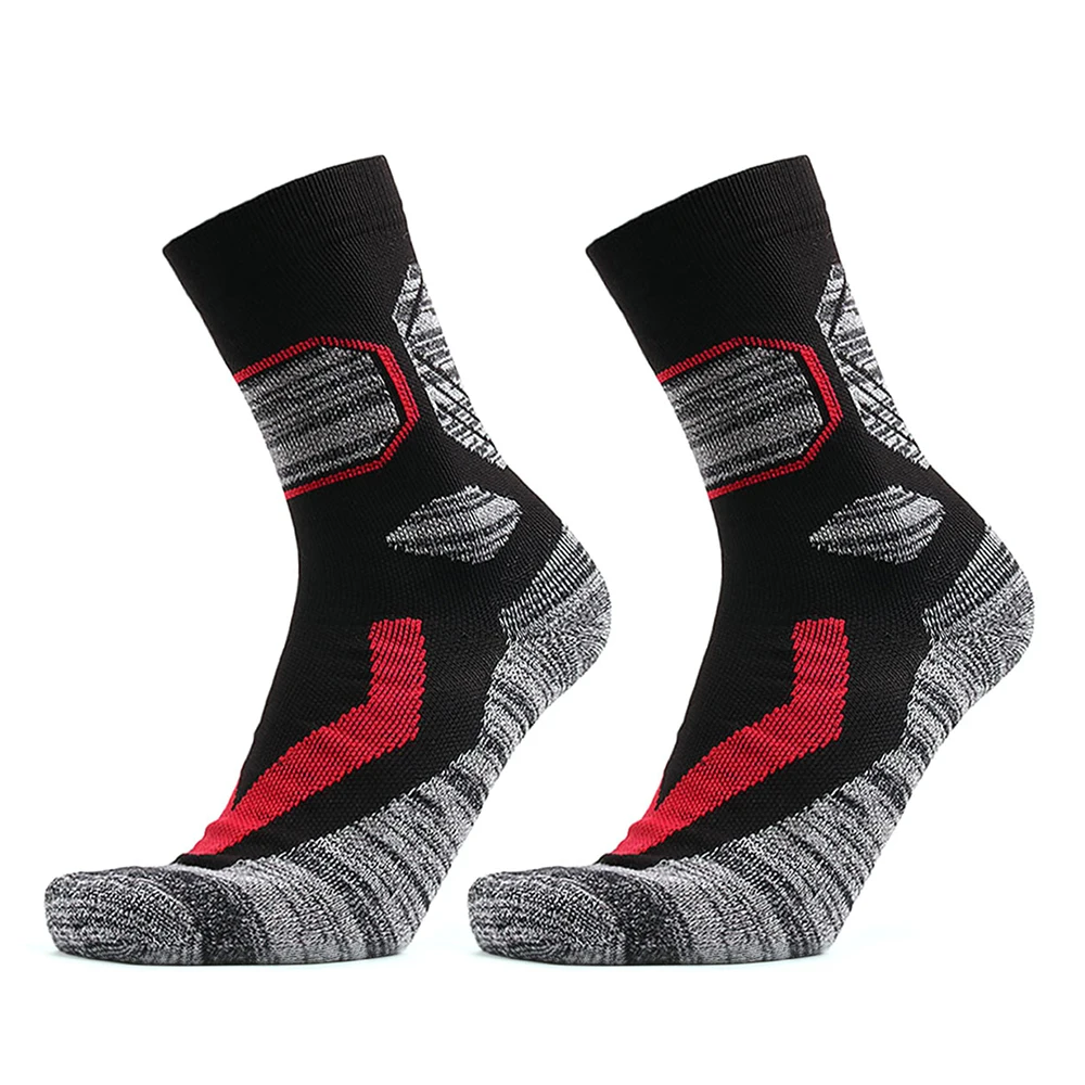 Отобранный хлопок в носках впитывает влагу и обеспечивает комфорт ногам без пота, а утолщенный дизайн эффективно уменьшает трение ног и делает их более мягкими и теплыми. Это красивые носки для катания на лыжах, сноуборде, треккинга, альпинизма, альпинизма и видов зимних видов спорта.