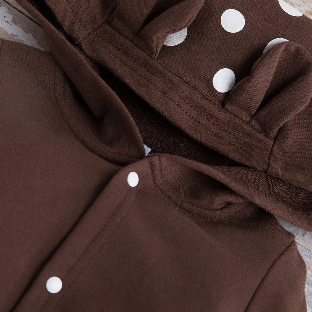 2019 Модный осенне-зимний детский Одноцветный Начинающий ходить ребенок девочка длинный рукав в горошек мультфильм уши комбинезон новорожденный 40 *